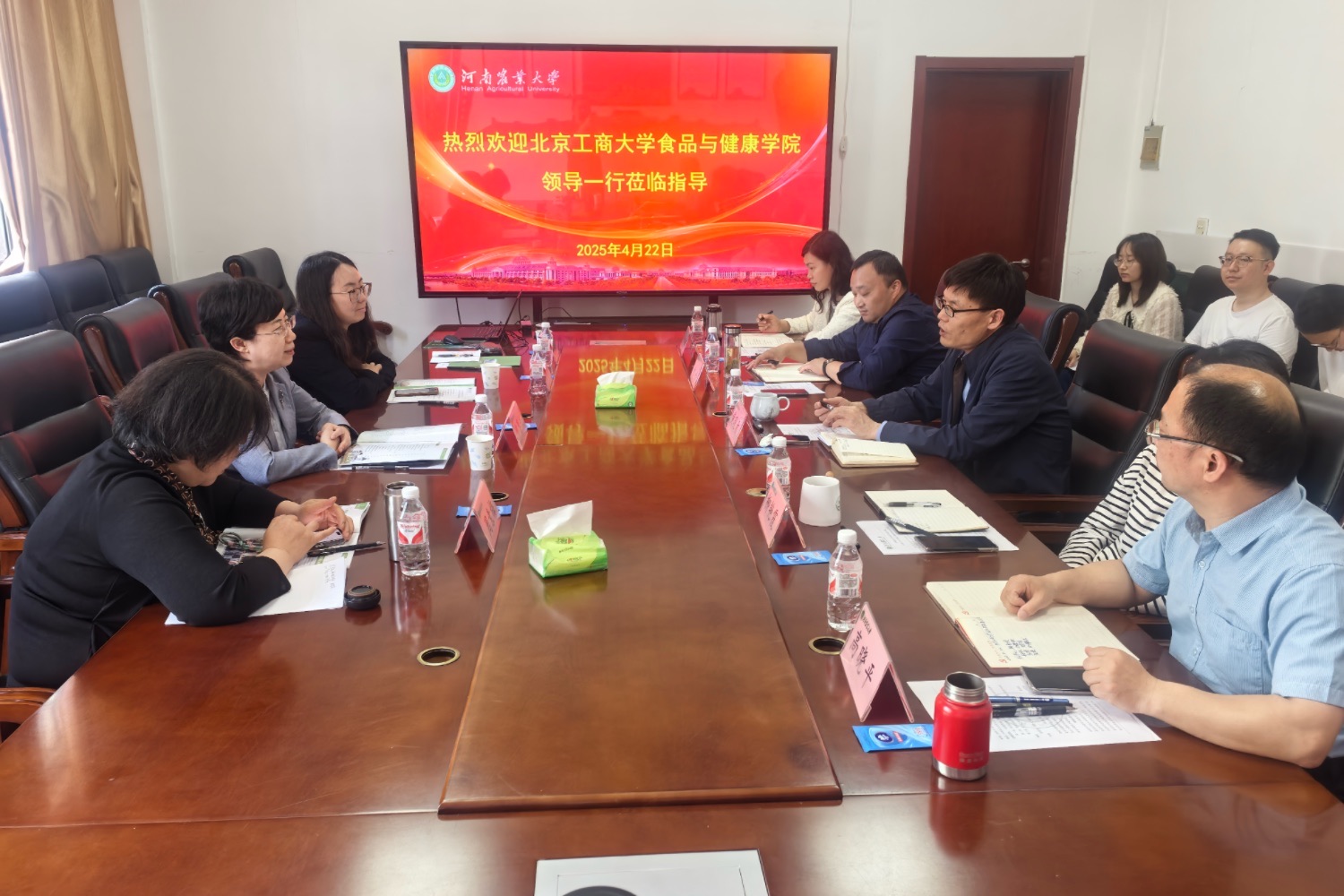 在河南農業大學食品科學技術學院,院長黃現青詳細介紹了學科建設成效與研究生培養路徑,雙方就專業建設、對外合作等展開交流。