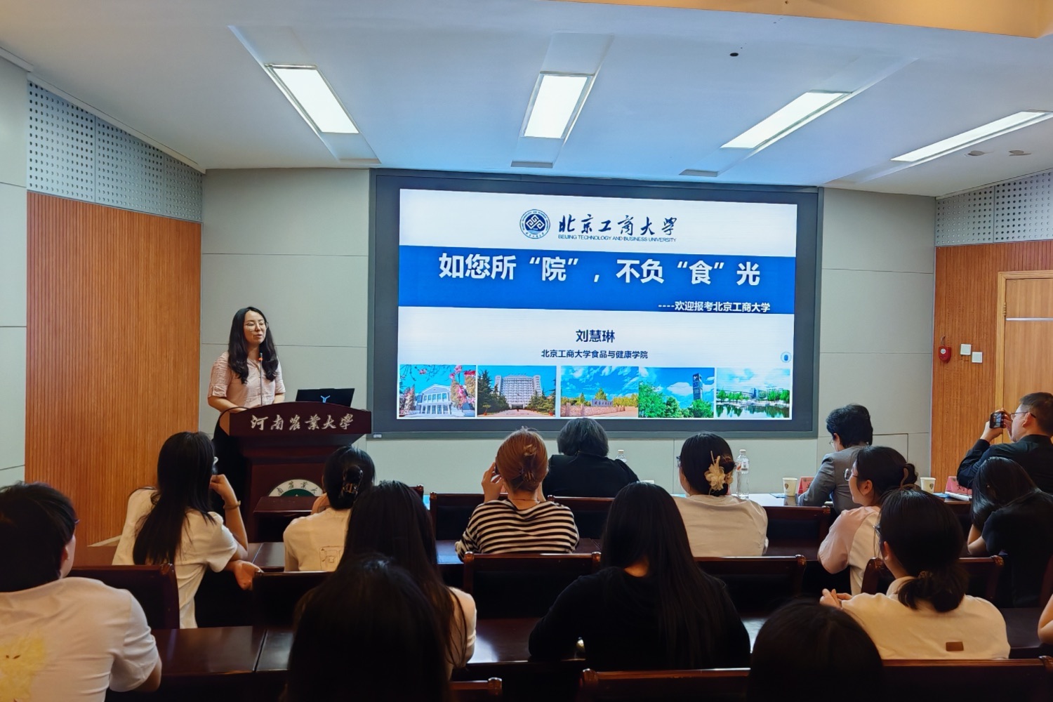 宣講與調研團隊先后赴河南工業大學、鄭州輕工業大學、河南農業大學三所高校,面向食品及其相關專業的本科生開展研究生招生宣講。通過宣傳視頻、PPT講解等形式,系統介紹我校區位優勢、學科特色、學院師資力量、科研平臺及研究生獎助政策,并針對培養模式、報考流程等熱點問題現場答疑,激發優秀考生的報考意愿。
