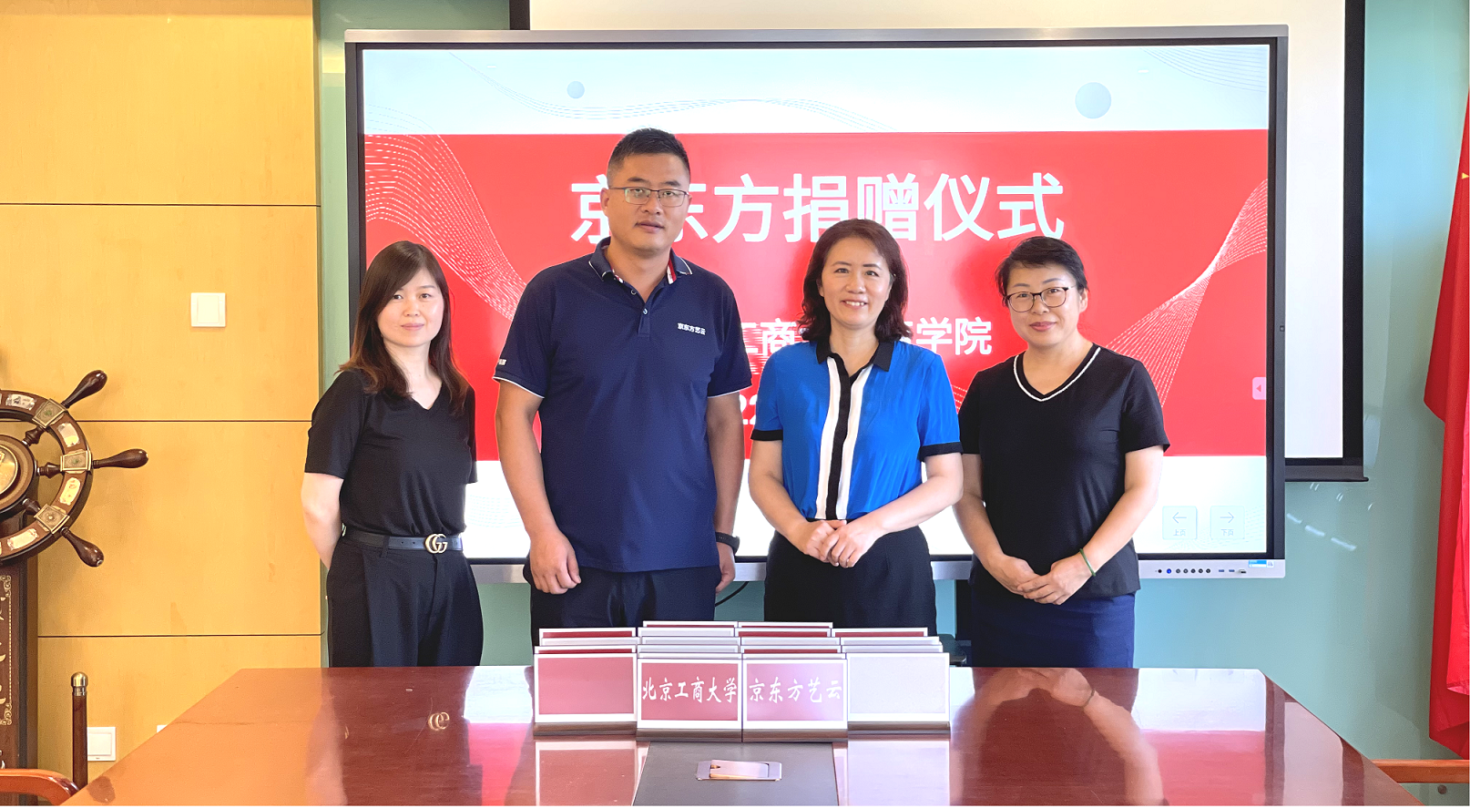 為進一步加強校企合作,深度挖掘和充分利用校友優勢資源,7月18日,商學院舉行京東方藝云科技有限公司捐贈儀式。商學院黨委書記張春萍、副書記張倩,京東方藝云科技有限公司教育事業部總經理李慧軍及趙順玉參加儀式。