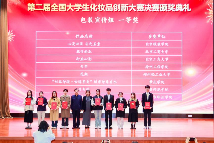 本次大賽由北京工商大學(xué)和中國(guó)日用化工協(xié)會(huì)主辦,輕工科學(xué)與工程學(xué)院和化妝品學(xué)科建設(shè)與創(chuàng)新發(fā)展專(zhuān)業(yè)委員會(huì)承辦。我校高度重視,輕工科學(xué)與工程學(xué)院認(rèn)真籌備確保比賽各環(huán)節(jié)順利進(jìn)行,學(xué)校積極組織學(xué)生參賽,在指導(dǎo)教師和參賽隊(duì)員共同努力下取得優(yōu)異成績(jī),共獲一等獎(jiǎng) 5 項(xiàng)、二等獎(jiǎng) 1 項(xiàng)、三等獎(jiǎng) 7 項(xiàng)、優(yōu)秀獎(jiǎng) 1 項(xiàng),7 名教師獲優(yōu)秀指導(dǎo)教師獎(jiǎng),學(xué)校獲優(yōu)秀組織獎(jiǎng)。本次比賽全面展示學(xué)生科技創(chuàng)新和綜合能力的最新成果,通過(guò)以賽促學(xué)、以賽促教、以賽促創(chuàng)推動(dòng)產(chǎn)教融合,加快化妝品領(lǐng)域高水平復(fù)合型人才培養(yǎng),學(xué)生在舞臺(tái)上綻放光彩,推動(dòng)學(xué)校相關(guān)學(xué)科專(zhuān)業(yè)發(fā)展、學(xué)生實(shí)驗(yàn)實(shí)踐和創(chuàng)新能力提升,擴(kuò)大了我校化妝品學(xué)科專(zhuān)業(yè)的影響。