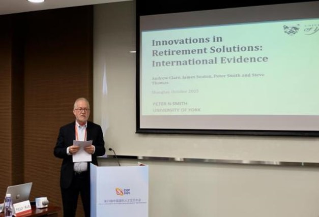 在主旨演講環(huán)節(jié),約克大學(xué)經(jīng)濟(jì)學(xué)系Peter教授作了題為“Innovations in Retirement Solutions: International Evidence”的學(xué)術(shù)報(bào)告。他基于個(gè)人一生的投資與消費(fèi)決策,重點(diǎn)探討了如何在退休階段實(shí)現(xiàn)財(cái)富平穩(wěn)過渡與風(fēng)險(xiǎn)控制。根據(jù)研究結(jié)論,他認(rèn)為,靈活的資產(chǎn)配置與科學(xué)的風(fēng)險(xiǎn)管理是實(shí)現(xiàn)可持續(xù)退休生活的關(guān)鍵。