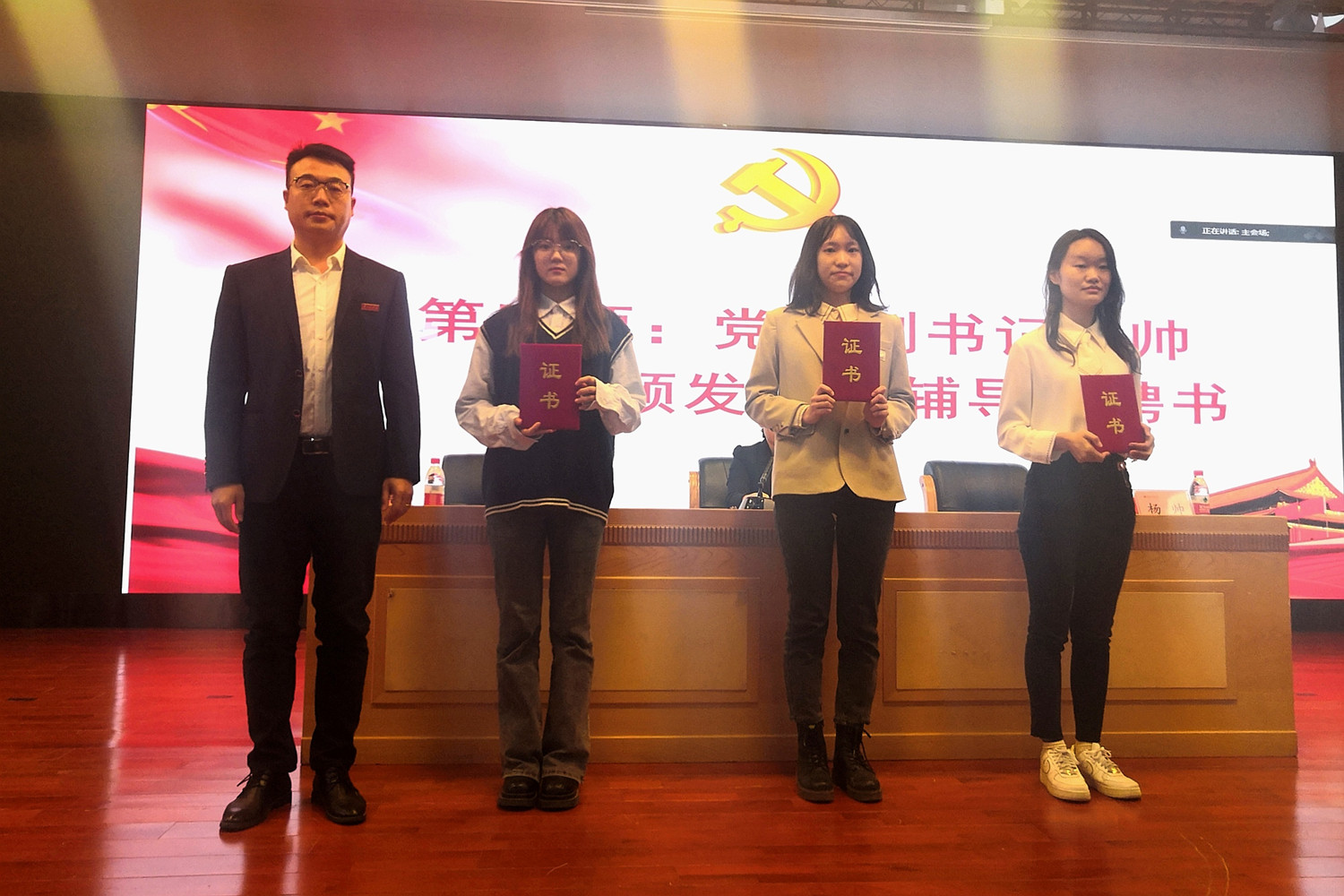 學(xué)院黨委副書記、分黨校副校長楊帥為黨校兼職輔導(dǎo)員頒發(fā)聘書。