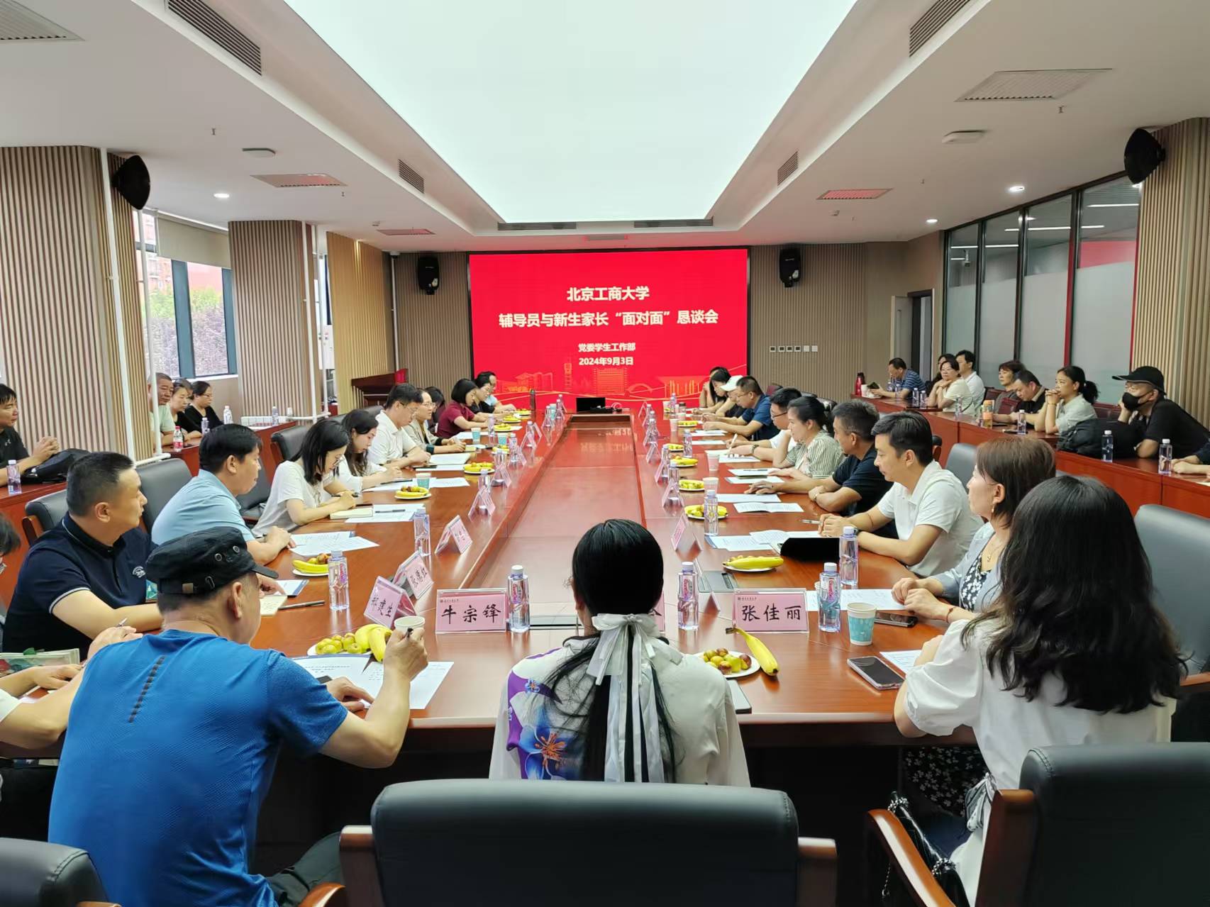 為進(jìn)一步加強(qiáng)家校協(xié)同育人體系建設(shè),學(xué)校于9月3日在良鄉(xiāng)主校區(qū)召開(kāi)2024級(jí)新生家長(zhǎng)“面對(duì)面”懇談會(huì)。學(xué)生處處長(zhǎng)鄭光,教務(wù)處副處長(zhǎng)、創(chuàng)新創(chuàng)業(yè)教育學(xué)院院長(zhǎng)蓋曉慶,食品與健康學(xué)院黨委副書記熊慧以及部分輔導(dǎo)員代表參加。座談會(huì)由學(xué)生處副處長(zhǎng)曹璐婷主持。