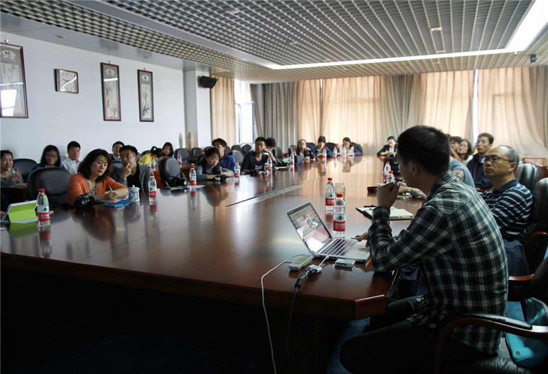 一個小時的采風活動后,通訊員們帶著自己的攝影作品回到會議室,邱實對部分作品從構圖、色彩、拍攝角度、光線的運用等方面,做了專業而精彩的點評。此外,藝術與傳媒學院白京老師也結合自己多年的攝影實踐經驗,為通訊員們從圖片焦點、曝光、構圖和白平衡的調整等方面做了簡要介紹。
