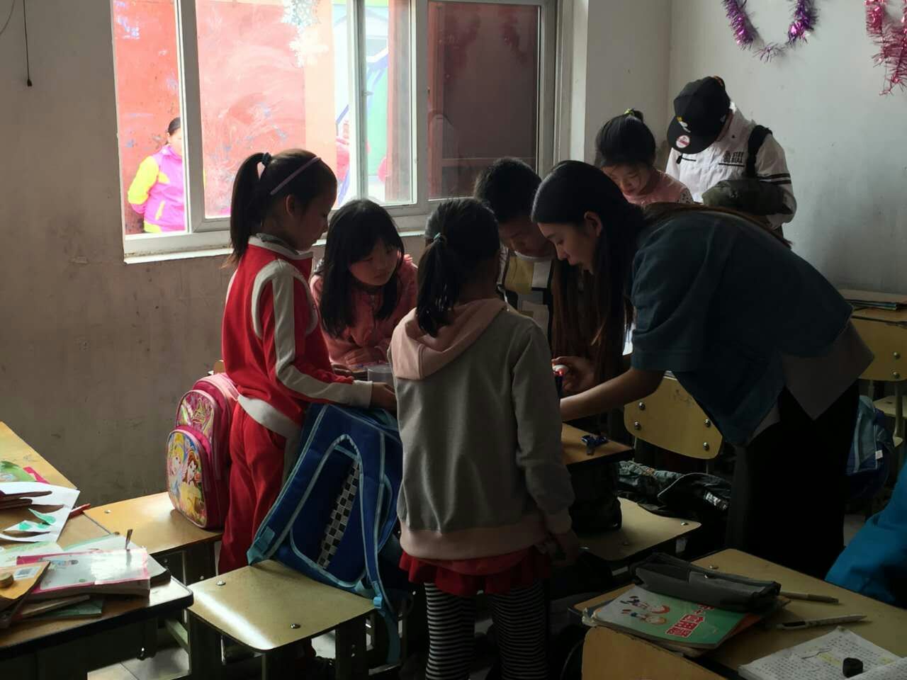每周三下午,志愿者學(xué)生早早趕到學(xué)校,按照原定計(jì)劃四人為一組,準(zhǔn)時(shí)開始教學(xué)。考慮到所協(xié)助教學(xué)的小學(xué)設(shè)備并不完備,志愿者們主動(dòng)帶上自己的筆記本電腦,并利用手機(jī)軟件等幫助教學(xué)。音樂課上,伴隨著動(dòng)聽的音樂以及志愿者們生動(dòng)的講解,小學(xué)生們隨著志愿者們沉浸在音樂的世界里,一起歡唱,志愿者還帶領(lǐng)同學(xué)們分組表演音樂劇,演繹出一幕幕精彩的故事場(chǎng)景;美術(shù)課上,為了讓同學(xué)們有更多的時(shí)間實(shí)踐,志愿者在認(rèn)真且簡(jiǎn)短地講解后,將學(xué)生們分成了多個(gè)小組,使其一起在交流中體會(huì)繪畫的樂趣,而志愿者則在一旁幫助大家完成繪畫作品,引導(dǎo)他們用自己的方式展現(xiàn)其眼中的世界,努力開拓孩子們的思路,使每個(gè)人思維的獨(dú)特性得到發(fā)展;課外拓展課上,志愿者們?cè)诮虒W(xué)樓中間的空地上與小學(xué)生們一起嬉戲玩耍,組織他們做各種各樣的游戲,釋放孩子們的天性,給予他們充分的自由與快樂,帶給其悉心且溫暖的呵護(hù)。