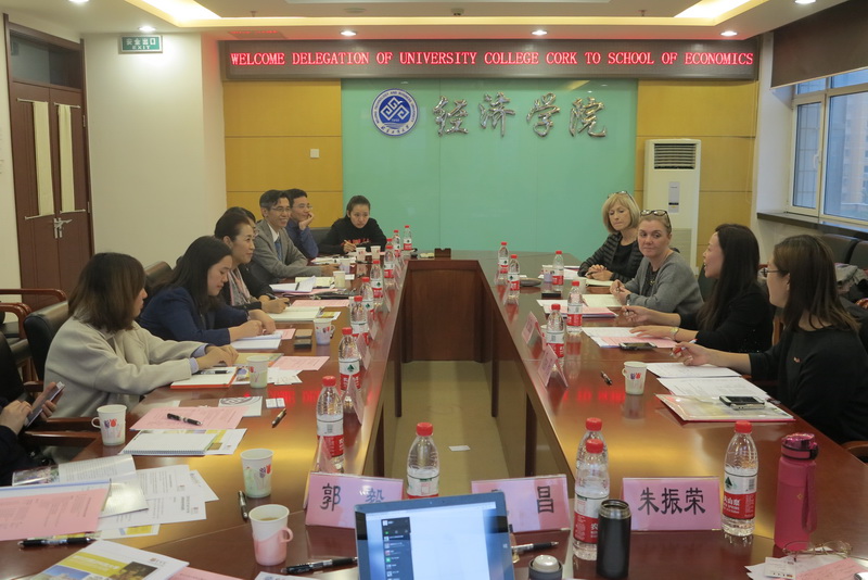 考克大學經濟系Eleanor教授介紹了考克大學商學院和經濟學系的機構改革和專業構成,對經濟學院和商學院在考克大學留學學生的學習和表現給予充分肯定,對考克大學商學院下一步國際交流的重點方向進行了說明,表達了與經濟學院和商學院在各個方面展開進一步交流與合作的意愿。之后,雙方就一些具體合作細節展開了詳細的討論,一致同意將合作事宜盡快從意向落實到推進執行。