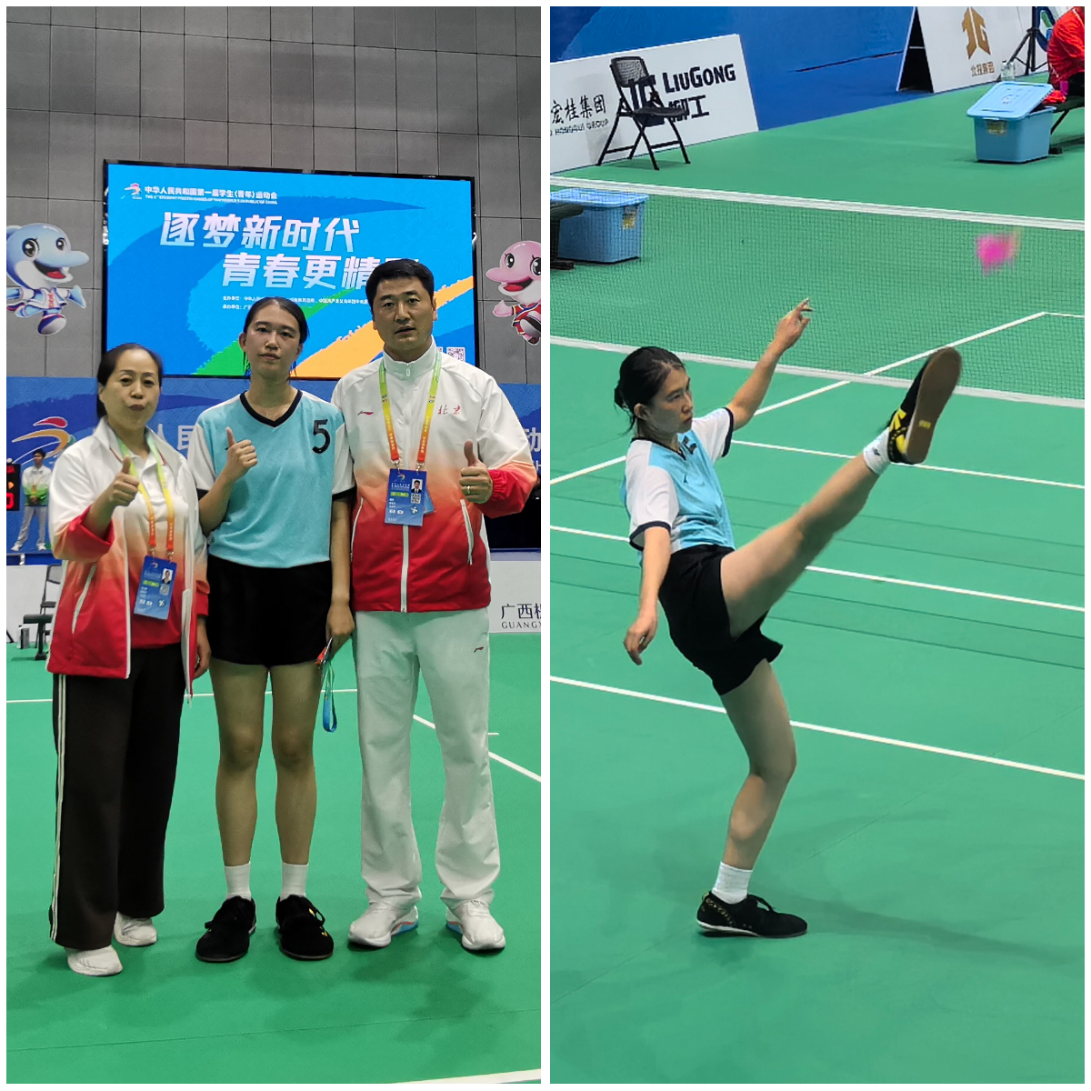 11月4日,第一屆全國學生(青年)運動會開幕式在廣西南寧舉行。我校語言與傳播學院研究生楊天驕參加毽球女子單人項目的角逐,獲得大賽第五名。