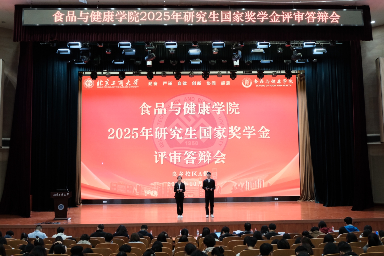 為深化研究生教育改革,選拔樹立優(yōu)秀典型,營造崇尚學術、追求卓越的育人氛圍,10月9日,食品與健康學院在良鄉(xiāng)校區(qū)A報告廳隆重舉行2025年研究生國家獎學金評審答辯會。學院院長王彥波、黨委副書記熊慧、副院長劉慧琳、孫嘯濤、院長助理張嬋,以及各系主任、教師代表、專兼職輔導員和研究生代表共計200多人參會。會議由李泰沛同學和劉晨朔同學主持。