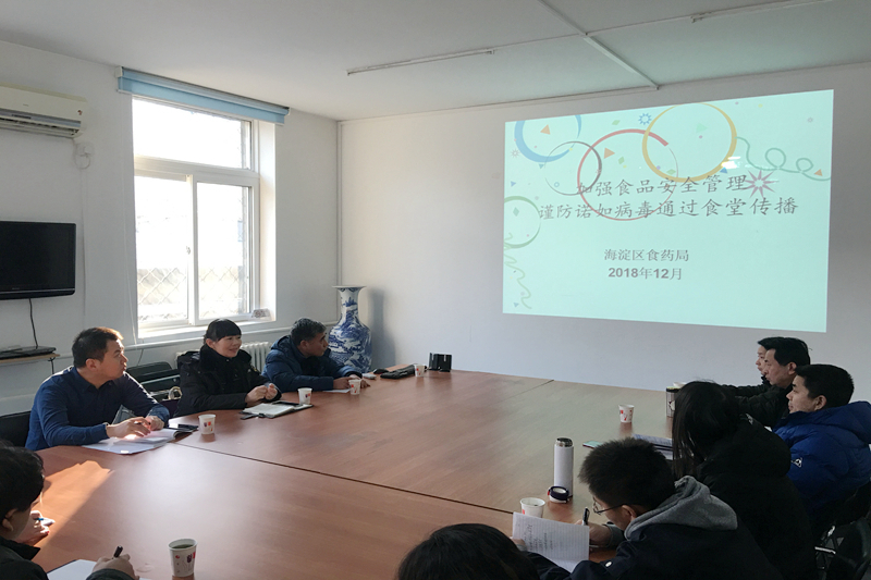12月10日,后勤基建處召開食品安全工作會,甘家口街道食藥所所長王藝出席會議并進行食品安全培訓。飲食管理科全體員工、外包食堂經理、校園管理科、宿舍管理科和動力維修科等科室負責人參加會議。