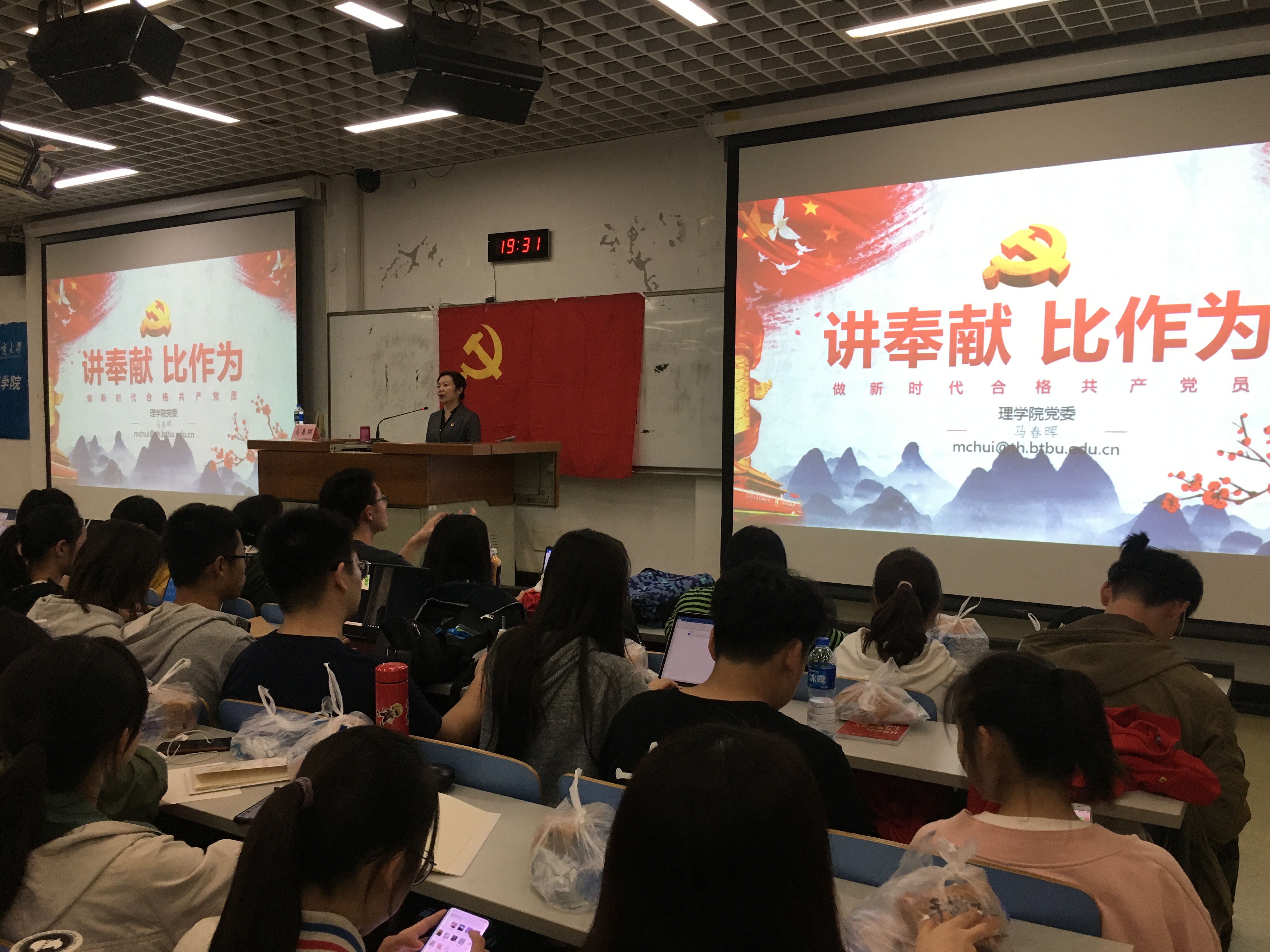 10月11日晚,理學院、數(shù)學與統(tǒng)計學院、經(jīng)濟學院聯(lián)合分黨校入黨積極分子培訓班第二場講座在良鄉(xiāng)校區(qū)正式開課,理學院黨委書記馬春暉講授了題為“講奉獻,比作為,做新時代合格共產(chǎn)黨員”的生動一課。
