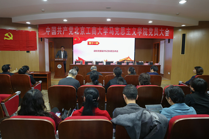 11月20日上午,中國共產黨北京工商大學馬克思主義學院黨員大會在阜成路校區舉行,學院全體黨員和預備黨員參加大會。學校黨委副書記張德玉出席會議并講話。學校黨委組織部部長張國龍、馬克思主義學院全體黨員參加大會。