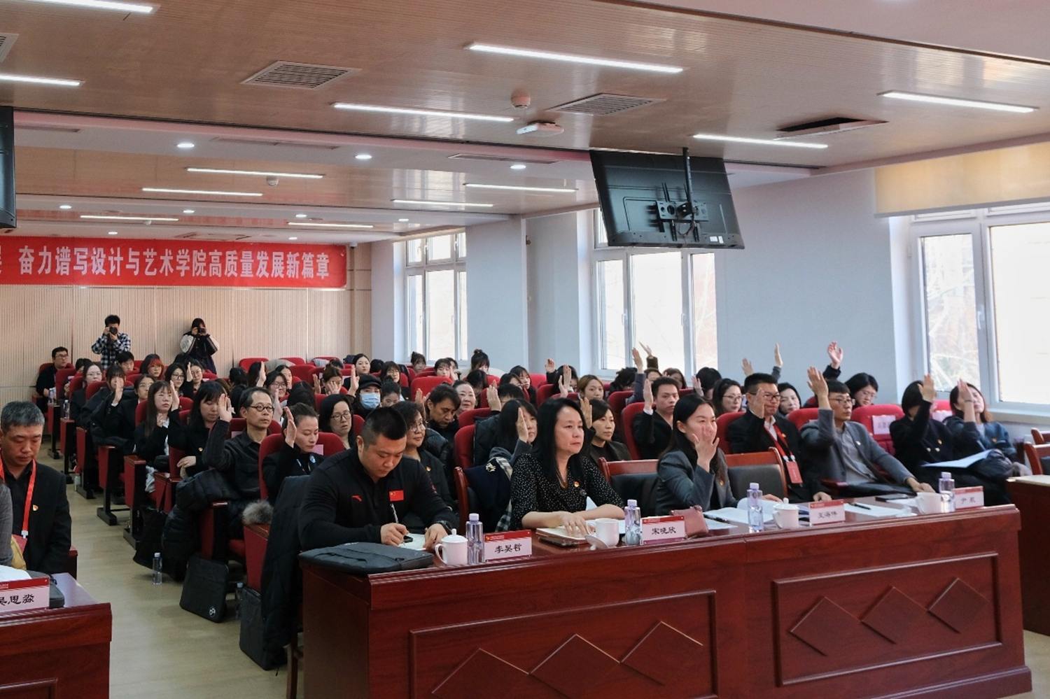 學(xué)院黨委書記王海偉作題為《凝心聚力,共謀發(fā)展,奮力譜寫學(xué)院高質(zhì)量發(fā)展新篇章》的工作報(bào)告。報(bào)告全面回顧了學(xué)院黨委過去一年的工作,提出了下一步的發(fā)展思路、發(fā)展目標(biāo)、主要任務(wù)和工作舉措。下一步,學(xué)院要落實(shí)立德樹人根本任務(wù),優(yōu)化協(xié)同育人體系;聚焦首都經(jīng)濟(jì)發(fā)展,構(gòu)建專業(yè)內(nèi)涵式發(fā)展人才培養(yǎng)體系;探索學(xué)科交叉融合,扎實(shí)推進(jìn)研究生教育改革;深刻把握國內(nèi)外發(fā)展現(xiàn)狀,推動(dòng)高質(zhì)量交流合作;加強(qiáng)高水平人才隊(duì)伍建設(shè),打造一流師資隊(duì)伍;全面提升文化育人作用,完善校園文化建設(shè)與思想政治教育協(xié)同育人機(jī)制。走好建設(shè)“培養(yǎng)數(shù)智時(shí)代一流設(shè)計(jì)人才的高質(zhì)量特色學(xué)院”之路。報(bào)告號(hào)召全院師生進(jìn)一步振奮精神,為開創(chuàng)學(xué)院事業(yè)新局面而共同努力,為學(xué)校高水平研究型大學(xué)建設(shè)作出新的更大貢獻(xiàn)!