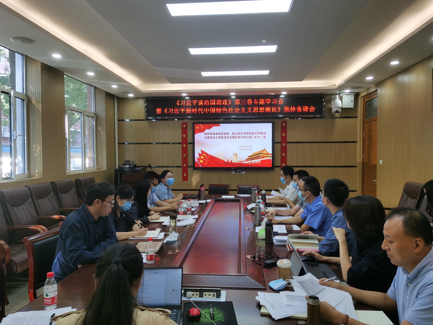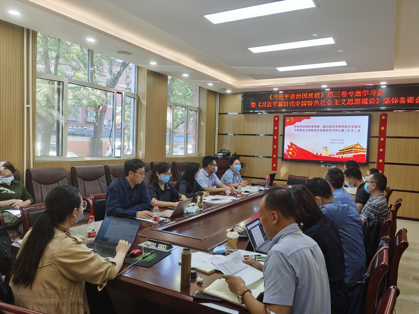9月16日上午,馬克思主義學院黨總支理論學習中心組(擴大)在阜成路校區舉行“聚焦思政課改革創新 助力高水平研究型大學建設”專題學習。馬克思主義學院黨總支書記任金晶,院長王魯娜,黨總支副書記樊江濤,副院長姚洪越、江燕,學院骨干教師參加了學習。