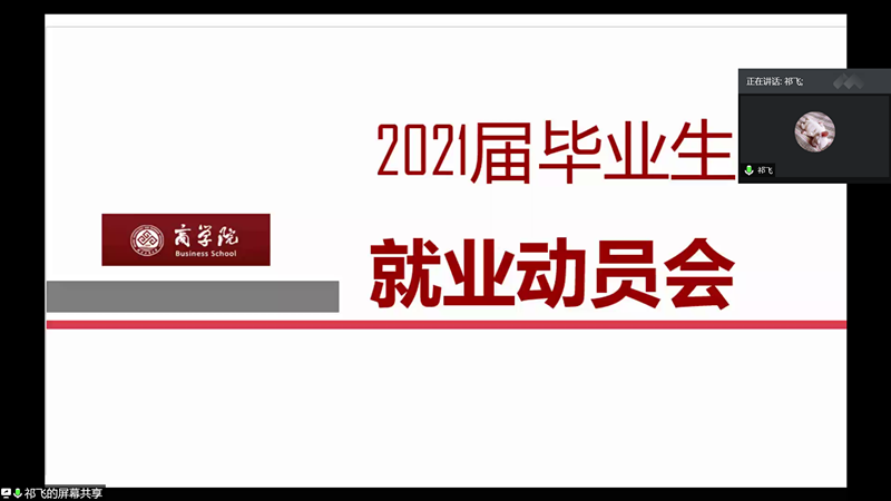 為了積極推進2021屆畢業生就業和升學工作,使畢業生進一步明確自己的目標,商學院于9月20日下午舉行2021屆畢業生就業動員會。學院黨委副書記張倩、就業輔導員祁飛、17級輔導員邢佳媛以及2017級全體本科生參加會議,會議邀請16級優秀畢業生、考取復旦大學的劉涵玉和就職于中國醫學科學院基礎醫學研究所的劉皓月為同學們分享考研、就業經驗。