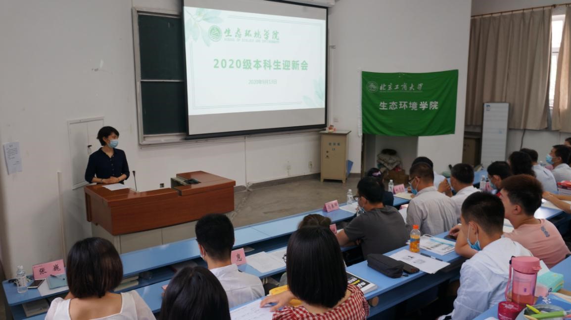914日上午9點,學院召開了2020級本科生迎新會,學院的領導和教師代表向各位新生同學表示了熱烈歡迎和真誠的問候。副院長(主持工作)姚志良教授向新生們介紹生態環境學院的基本情況,對同學們提出期待與寄語。來自環境202班的趙天歌代表新生發言,與同學們交流對環境工程專業的認知以及自己對未來人生的規劃。環境172班的于惠代表老生分享了自己的學習心得和自己本科生階段的感悟。教師代表祁光霞副教授用自己大學的經歷向同學們介紹了環境工程專業,她解釋了大學是什么、大學怎么過,并對同學們提出希望:追求高度自律,培養自信。馬春暉書記向同學們強調“自我管理”“規劃和節奏”“溝通和合作”的重要性,希望大家面臨即將開始的大學生活認真規劃目標,既能仰望星空,又能腳踏實地,鼓勵同學們求真、立德、勤奮、創新,在畢業之時能滿載知識和抱負,自信地擔當起歷史責任,未來成為鑄就北工商榮耀的光芒。