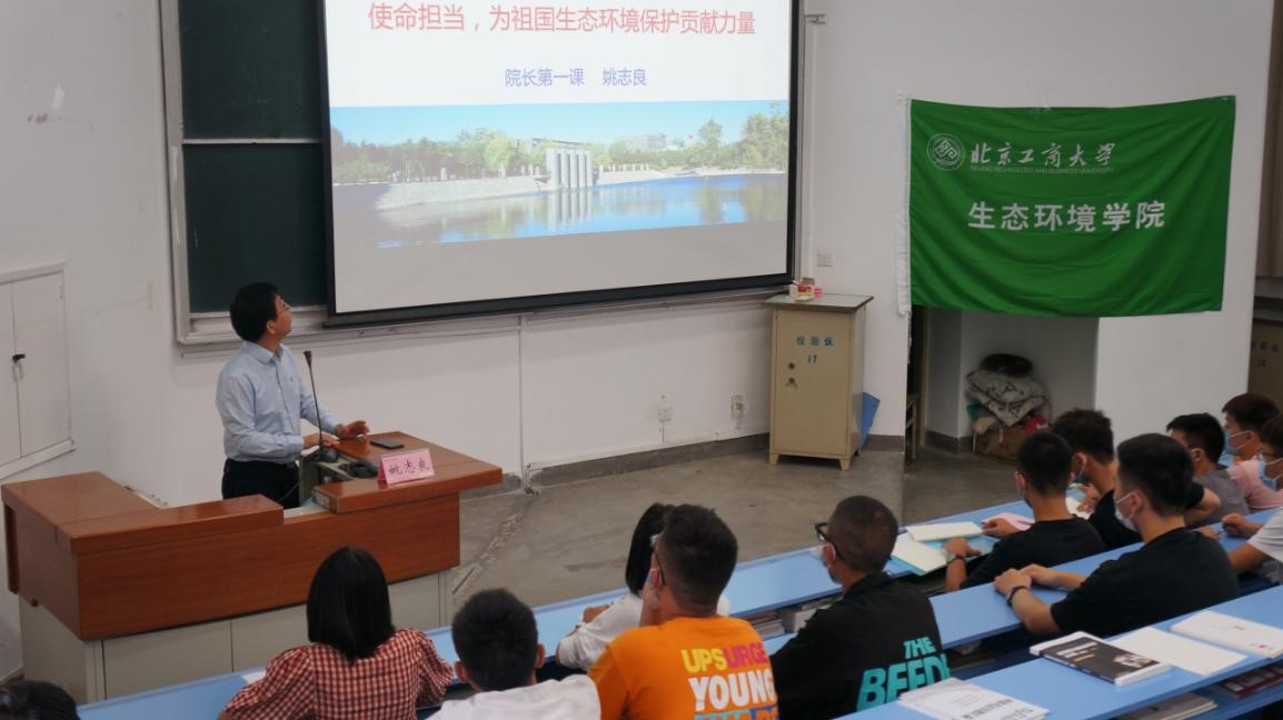 迎新會后,姚志良教授為同學們講授院長第一課。他向同學們介紹了我校和生態環境學院的歷史以及自己的人生經歷,并叮囑新生們:新時代青年人,要有夢想,敢奮斗,直面挫折,不畏挑戰,書寫時代篇章。