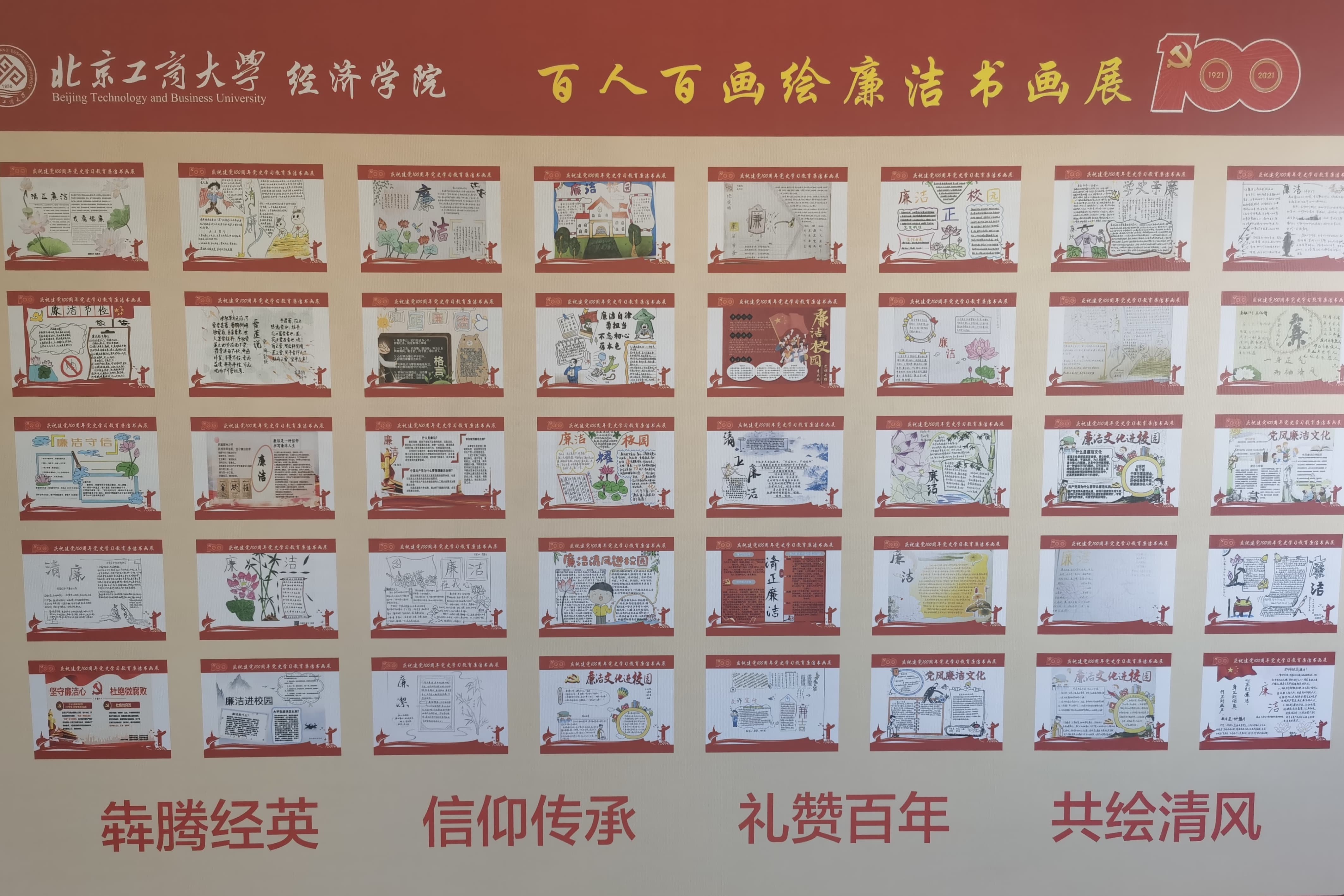 學院發揮學生主體作用,使廉潔成為校園文化的新常態。學院舉辦了“我為群眾辦實事——黨員進宿舍”活動,成立學生“廉潔教育宣講團”,黨員們在宿舍內開展黨風廉政宣傳教育,充分發揮學生黨員的先鋒模范作用,使得“朋輩教育”真正發揮作用,落地見效。學院開展“堅守廉潔底線,弘揚清風正氣”主題團會、主題觀影分享、主題故事交流,百人百畫繪廉潔書畫展等活動,在阜成路和良鄉兩校區設立廉潔書面展,進而推進校園形成“以廉為榮,以貪為恥”的文化氛圍,幫助學生正心修身,牢固樹立敬廉崇潔的思想作風和行為習慣。