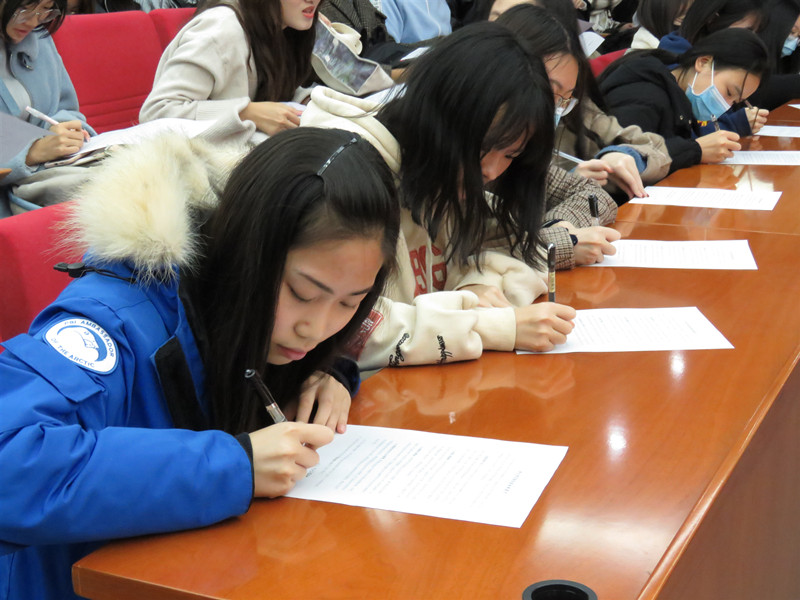 會上,經(jīng)濟學院輔導員路京明宣讀《關于2020年度經(jīng)濟學院黨員宿舍和黨員床位掛牌的決定》。各位黨員在“學生黨員聯(lián)系宿舍承諾書”上簽字,承諾充分發(fā)揮學生黨員的先鋒模范作用。馬靈清代表我院學生黨員發(fā)言,她表示要堅定共產(chǎn)主義理想信念;明確自身職責,加強服務群眾的能力;做表率,樹先鋒,用實際行動擦亮黨員先鋒底色。向小平和尹皓霙倢兩位老師向各支部學生黨員代表發(fā)放黨員宿舍掛牌。各位黨員、預備黨員重溫入黨誓詞,一句句錚錚誓言,表達了自己不忘初心跟黨走的決心。