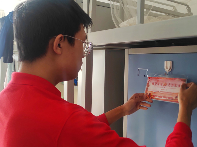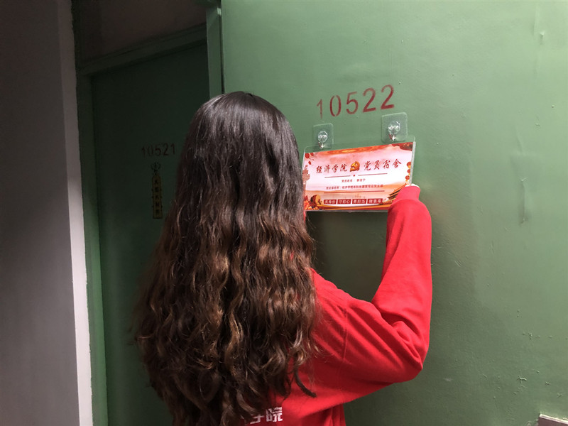 啟動儀式結束后,學生黨員回到宿舍,將黨員宿舍、床位的掛牌懸掛在門上和床位下方。那通紅耀眼的“黨員宿舍”門牌是對每位黨員的肯定,更是對他們的期待,期待他們用更嚴格更自律的方式要求自己,遵守各項規(guī)章制度,真正發(fā)揮模范帶頭作用,影響和帶動身邊的同學養(yǎng)成好的學習和生活習慣。