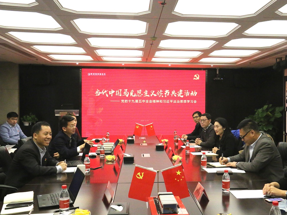 為進一步鞏固馬克思主義理論和習近平新時代中國特色社會主義思想的學習效果,持續貫徹落實北京市委宣傳部《關于推進馬克思主義學院與當代中國馬克思主義讀書活動試點單位共建的工作方案》部署,12月18日下午,馬克思主義學院黨總支書記任金晶、副書記樊江濤、副院長姚洪越、教工黨支部書記杜凡、教研室主任楊春花一行赴北京乾成律師事務所進行學習交流。乾成律師事務所主任、黨支部書記廖鴻程主持了學習會。