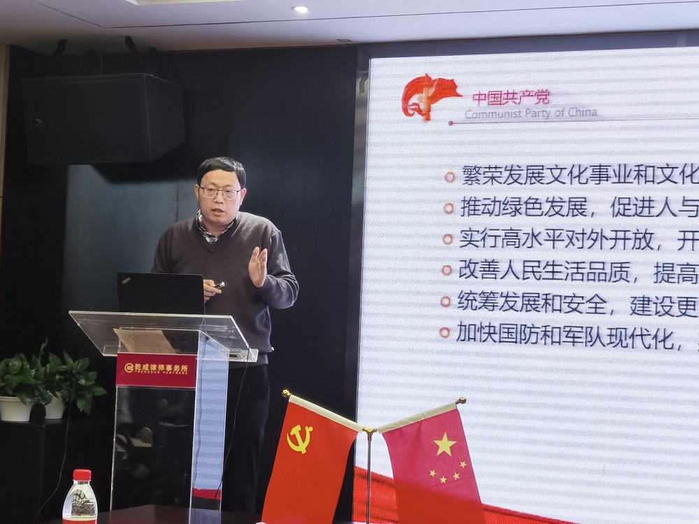 乾成律師事務所黨支部委員王燕、執委會委員宋獻濤,以及黨員和入黨積極分子20余人參加了學習。