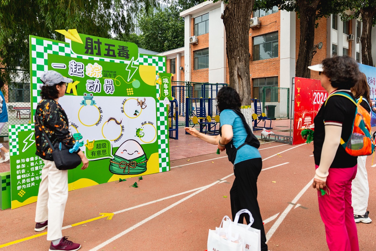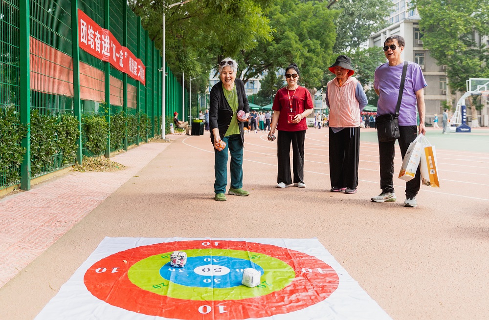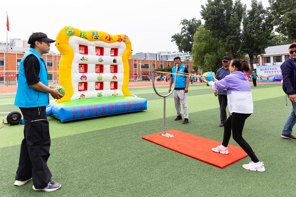 本次活動(dòng)的主體項(xiàng)目是精心設(shè)計(jì)的趣味運(yùn)動(dòng),讓每位參與者都能在輕松愉快的氛圍中享受運(yùn)動(dòng)的樂趣。“筷子夾球”項(xiàng)目需要在最短的時(shí)間內(nèi)用筷子夾出乒乓球再放入指定位置,鍛煉老年人的手指靈活度。“足球飛鏢”“沙包擲準(zhǔn)”“冰壺”“動(dòng)感單車”鍛煉老年人的四肢精準(zhǔn)度和力量。“投箭入壺”“吸盤射箭”、端午節(jié)民間傳統(tǒng)游戲“射五毒”“捶丸”既體現(xiàn)了傳統(tǒng)文化,又結(jié)合了現(xiàn)代技術(shù),為健康運(yùn)動(dòng)增添了科技感。“木球攻門”“套圈尋寶”既考驗(yàn)了策略思考,又增加了運(yùn)動(dòng)的趣味性。模仿游戲角色用彈弓將小鳥射向小豬的項(xiàng)目“憤怒的小鳥”充滿童趣,吸人眼球,既考驗(yàn)參與者的力度控制,又激發(fā)了競(jìng)技激情。“抓娃娃”讓老同志回到了童年時(shí)光,感受到滿滿的童趣。豐富的趣味運(yùn)動(dòng)項(xiàng)目寓意“點(diǎn)亮北京”,老同志們?cè)趨⑴c中提高了健康理念,增添了生活樂趣,增強(qiáng)了為首都增光添彩的良好心愿。