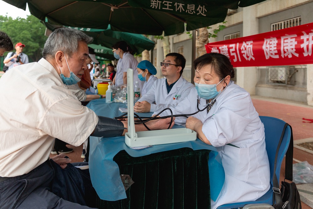 校醫(yī)院黨支部也在現(xiàn)場(chǎng)以“黨建引領(lǐng),健康護(hù)航”為主題,開展了特別的健康關(guān)懷活動(dòng),旨在為離退休教職工提供全面的醫(yī)療健康服務(wù),為老同志健康養(yǎng)老保駕護(hù)航。校醫(yī)院派出專家義診,包括測(cè)量血糖血壓、解讀體檢報(bào)告、結(jié)核病防治宣傳、醫(yī)保政策宣講以及健康咨詢等一系列溫馨服務(wù)。許多老同志表示,這樣的活動(dòng)讓他們充分感受到了黨和政府的關(guān)懷,深切感受到學(xué)校對(duì)老同志的尊重與照顧。
