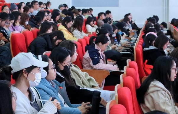 李艷春在深入分析當前就業形勢時強調,受多重因素疊加影響,就業市場面臨嚴峻挑戰,即用人單位崗位需求緊縮、供需結構性錯位加劇、就業風險挑戰、人工智能等新技術影響就業的不確定性加劇等。她介紹了學校的就業政策以及學院的就業情況、就業資源、就業服務和關鍵節點。同時,她勉勵同學們要前置規劃、實習賦能、整合資源,以最佳狀態迎接就業挑戰。李艷春特別提醒畢業生要提高警惕,增強安全防范意識,謹防各類就業陷阱。她鼓勵同學們更要響應國家號召,主動投身基層一線,在祖國最需要的地方綻放青春光彩,在廣闊天地間建功立業。