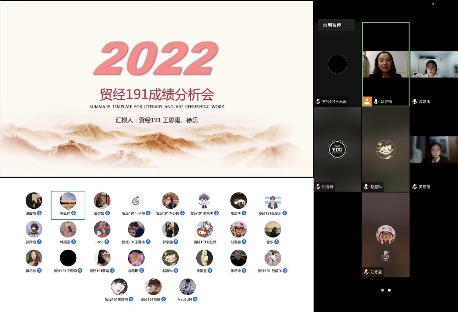 貿經191班長王思雨表示,居家學習期間,要學會改善居家學習的焦慮與懈怠情緒,保持高效的學習和工作效率。金融203班長彭東表示,此次云班會讓班級同學感受到了學院大家庭的溫暖,也更加明確了要嚴格遵守不延報、不瞞報、不漏報的居家防疫規定。金融219退伍大學生士兵虞智翔表示,逢此特殊的時期,作為學生更應嚴格律己,配合院校開展工作,抓牢學習,合理安排時間、調整自我狀態,嚴格落實各項管理要求,肩負起該有的擔當和責任,爭當一名優秀的新時代社會主義青年。