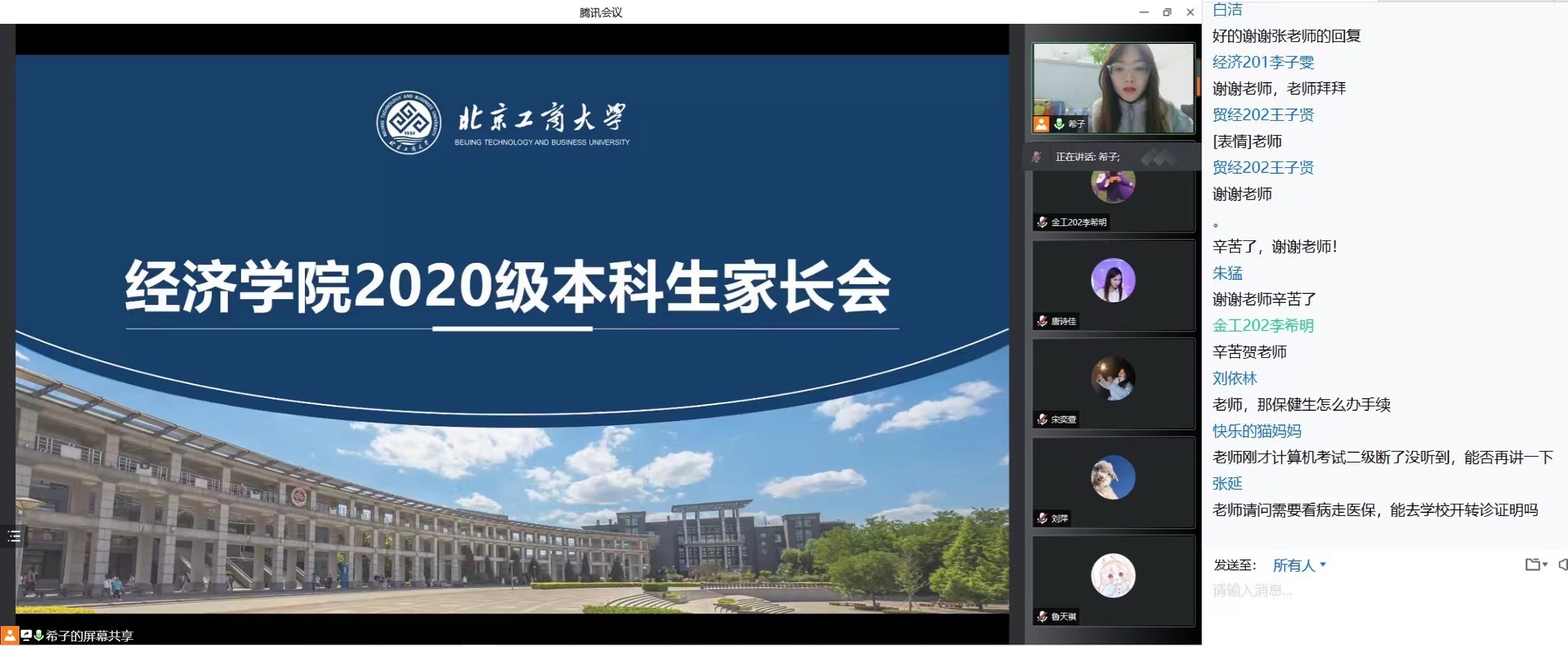2018級組織召開了以“家校合力,共助畢業生高質量就業”為主題的家長會,年級輔導員分析了當前就業的外部形勢和內部形勢、介紹了就業信息并講解了畢業條件等,為畢業生們指點迷津。學院黨委副書記李艷春介紹了學院開展的“暖心畢業行動計劃”,學院執行就業導師責任制,就業幫扶包干到人,為2022屆畢業生順利就業提供堅實保障。2019級和2020級輔導員從上學期的期末成績切入,分析了年級學年整體學業情況,以數據“說話”作出激勵,分享“經驗錦囊”并給出未來發展規劃建議。針對2021級學生,輔導員就學生培養與學生發展情況進行了匯報,并從學風建設角度介紹了專業教師指導、朋輩幫扶輔導、優秀榜樣引領、校友講座分享等學業支持工作。每場家長會均設置了溝通環節,輔導員就家長們的問題給予詳細解答,將工作做到學生及家長的心坎上。家長們紛紛表示把家長會開在云端十分及時、必要,解答了心中的諸多問題,增進了對學校的了解和信任。