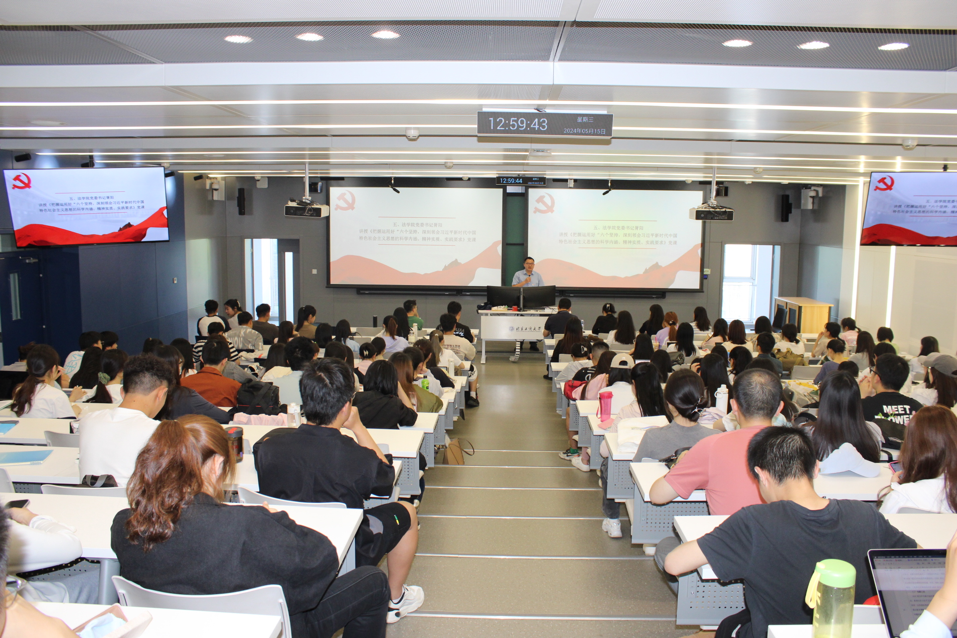 為深入學習貫徹習近平新時代中國特色社會主義思想,把握好這一思想的世界觀和方法論,堅持好、運用好貫穿其中的立場觀點方法。5月15日,法學院黨委書記胥陽以《把握運用好“六個必須堅持”,深刻領會習近平新時代中國特色社會主義思想的科學內涵、精神實質、實踐要求》為題講授黨課。法學院學工隊伍、學生黨員、發展對象和入黨積極分子近200人參加學習。