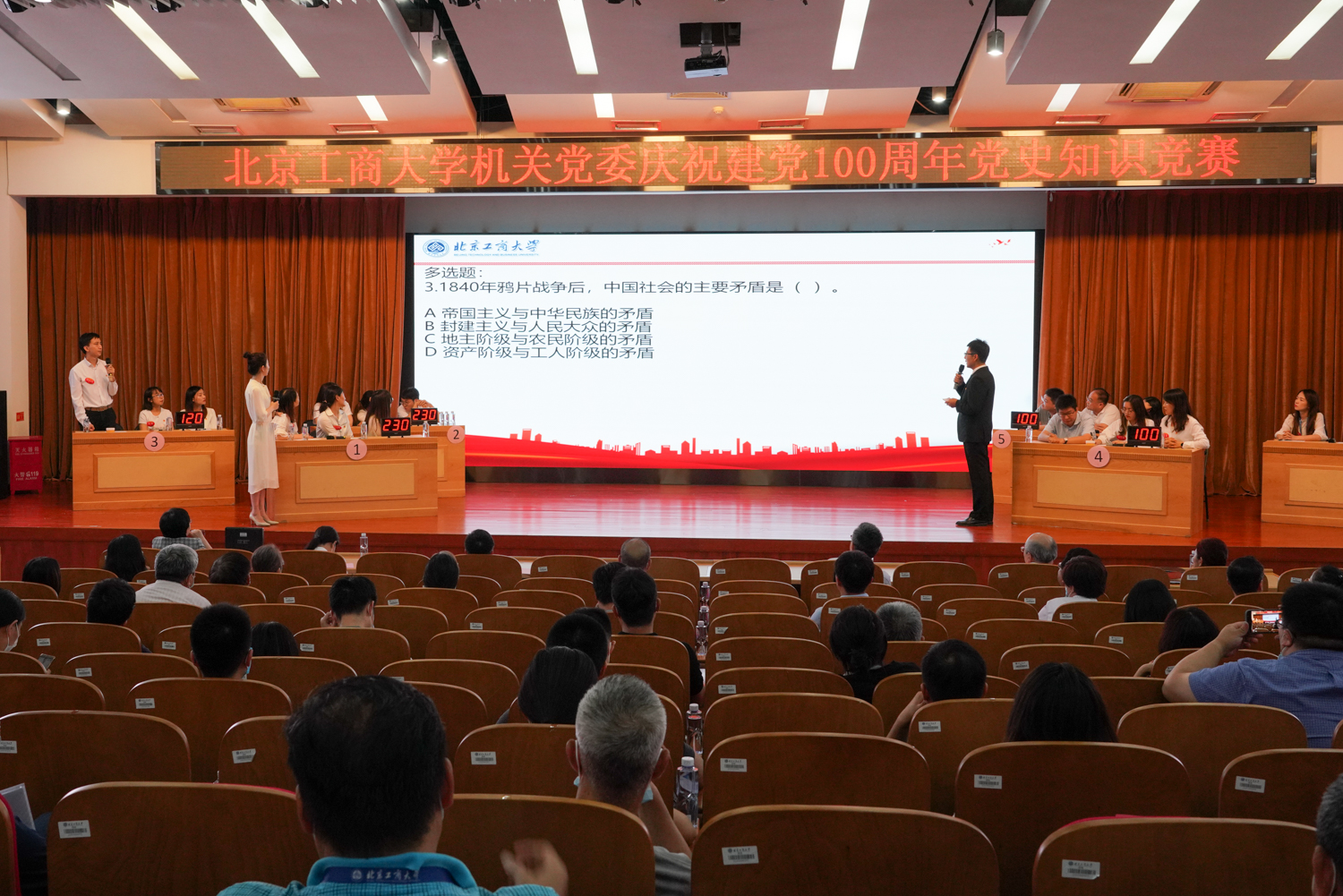 為迎接中國共產黨百年華誕,回顧黨的光輝歷程,營造學黨史、知黨情、感黨恩、跟黨走的濃厚氛圍,進一步豐富黨史學習教育形式,6月18日,機關黨委在良鄉主校區舉辦了慶祝建黨100周年黨史知識競賽。各黨支部選派的18名選手同場競技,機關各部門140余名黨員和群眾現場觀摩。學校黨委副書記李中奇出席競賽活動并進行點評總結。