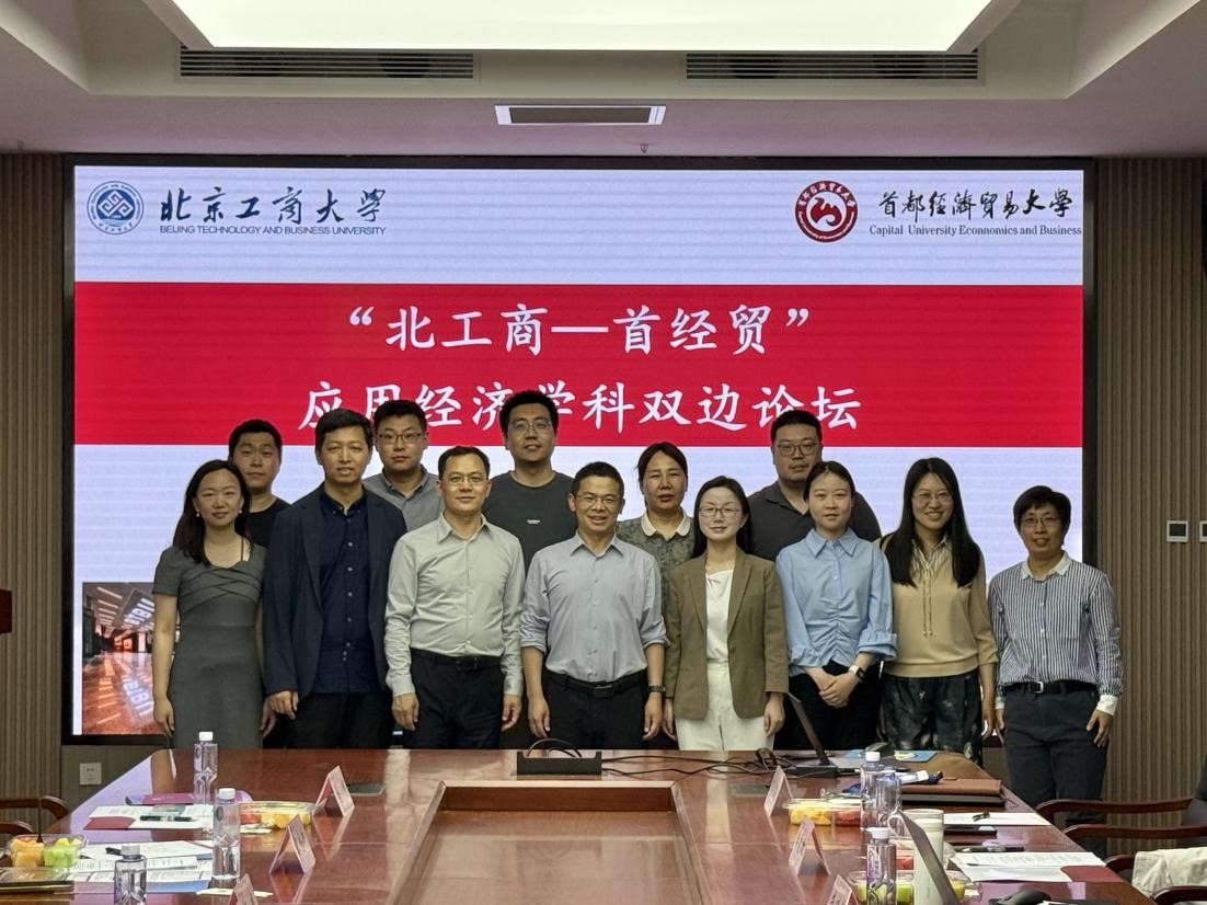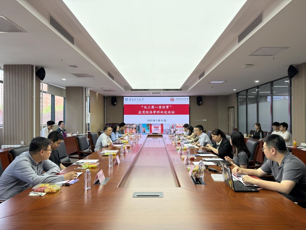 5月13日下午,“北工商-首經貿”應用經濟學科雙邊論壇在我校良鄉主校區舉辦。首都經濟貿易大學金融學院院長周開國教授,數據科學學院副院長沙葉舟教授,科研處副處長何楓教授,金融學院教師焦安琪副教授、汪念玲副教授、馬彪副教授、楊李正博,北京工商大學經濟學院執行院長詹新宇教授,副院長牛曉燕副教授,經濟系主任陳真玲教授、教師楊曉婷副教授、張凡,金融系李波副教授、李惠璇副教授和我院20余位研究生參加此次論壇交流活動。