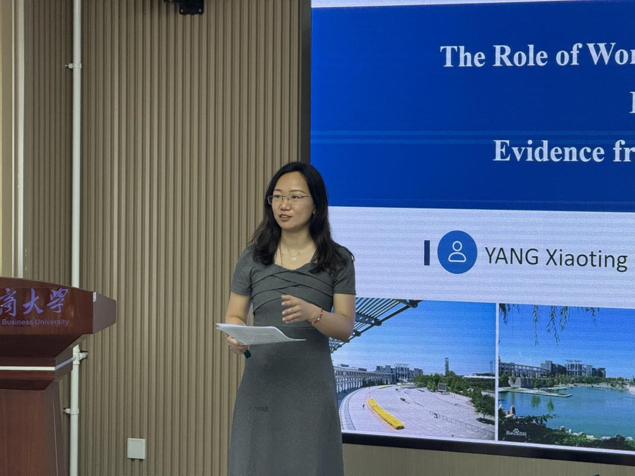 楊曉婷副教授報告了論文“The Role of Women’s bargaining power in the Allocation of Household Financial Assets: Evidence from Private Lending of CHFS Database”。文章基于CHFS數據,構建女性議價能力指標,采用IV-Probit模型解決內生性,研究了女性議價能力如何影響家庭金融資產配置的問題。研究結論為:女性議價能力提升顯著增加家庭風險資產配置(如股票、基金)和民間借貸參與率,但對房產投資存在擠出效應。焦安琪副教授點評建議,區分城鄉/教育水平異質性、驗證內生性工具變量并補充機制檢驗。