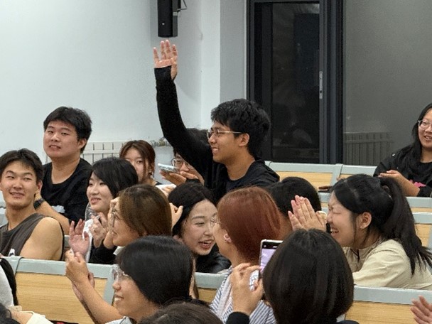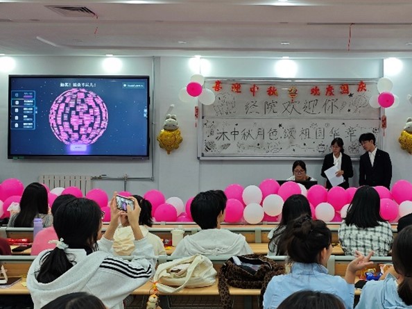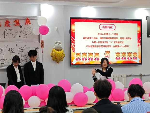 趣玩互動,韻承文化。游戲環(huán)節(jié)無疑是氣氛最熱烈的部分。無論是考驗知識儲備的“國慶中秋知識問答”,還是緊張有趣的“擊鼓傳花”和“emoji猜成語”,同學們都踴躍參與,現(xiàn)場歡聲笑語不斷。這不僅僅是簡單的游戲,更是一座連接家國情懷、文化自信與青春活力的橋梁。在搶答中,同學們共同重溫了關于祖國與傳統(tǒng)的文化記憶;在才藝展示里,他們見證著青年學子蓬勃的創(chuàng)造力。這些互動讓宏大的“家國團圓”主題化為身邊可感、可參與的生動體驗,不僅增強了同學們對民族文化的認同感和自豪感,更在默契協(xié)作中深化了彼此的友誼,凝聚了寶貴的集體精神。