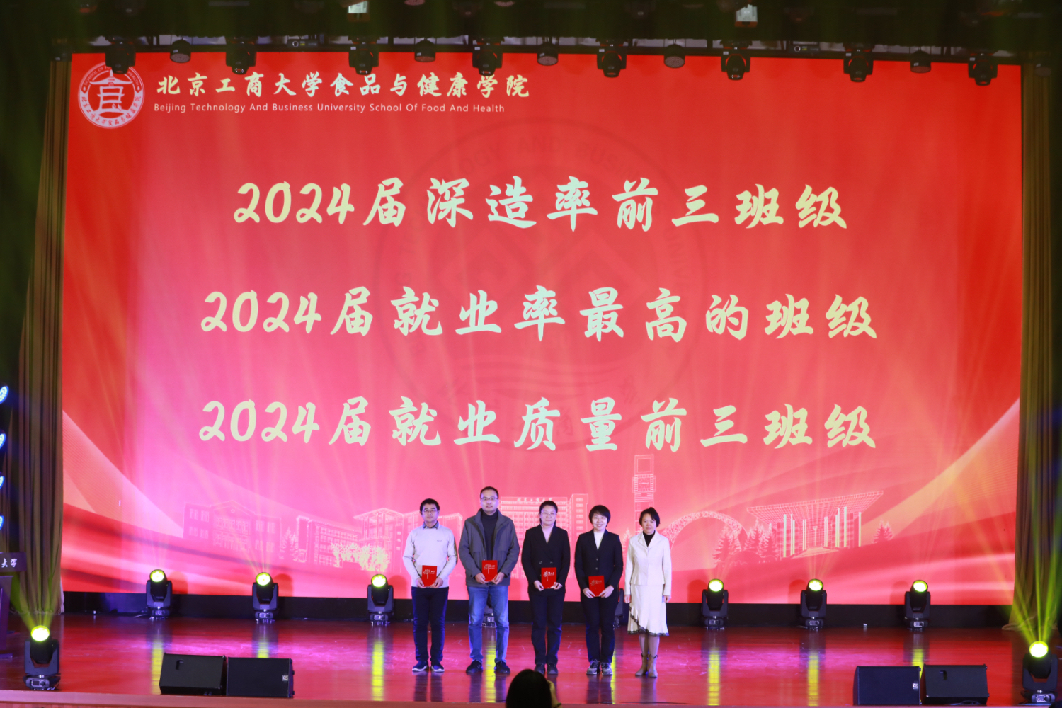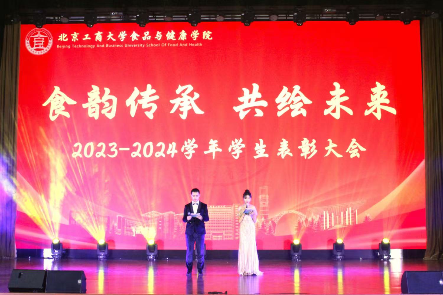 12月15日,食品與健康學院在良鄉校區A報告廳舉行了“食韻傳承 共繪未來”2023-2024學年學生表彰大會。北京工商大學黨委常委、副校長鄧祥征,校黨委學生工作部部長、學生處處長鄭光,校團委書記單紫薇,校研究生院副院長申現寶,食品與健康學院領導班子及各系主任以及教師代表,各年級輔導員,獲獎學生代表,本科生、研究生代表參加大會。