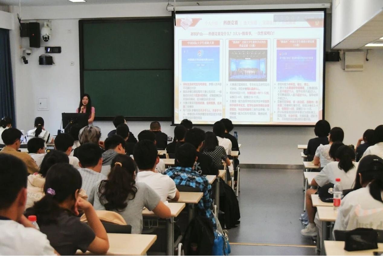 科創(chuàng)競(jìng)賽點(diǎn)亮大學(xué)時(shí)光,青春奮斗開(kāi)啟寶藏之旅。陶子墨以自身經(jīng)歷串聯(lián)四部分核心內(nèi)容,包括優(yōu)異學(xué)習(xí)成績(jī)、5項(xiàng)國(guó)家級(jí)及20余項(xiàng)省部級(jí)獎(jiǎng)項(xiàng)、豐富志愿服務(wù)經(jīng)歷,解析三大A+類(lèi)賽事規(guī)則;強(qiáng)調(diào)組隊(duì)策略與跨專(zhuān)業(yè)協(xié)作、項(xiàng)目從創(chuàng)意到實(shí)踐的打磨流程及PPT制作與答辯技巧;凝練競(jìng)賽對(duì)硬實(shí)力、軟實(shí)力的提升及帶來(lái)的隱形財(cái)富。最后,她以“給自己打80分,10分敬過(guò)往,10分獻(xiàn)未來(lái)”勉勵(lì)25級(jí)商院學(xué)子,詮釋了科創(chuàng)競(jìng)賽開(kāi)啟大學(xué)寶藏之旅。