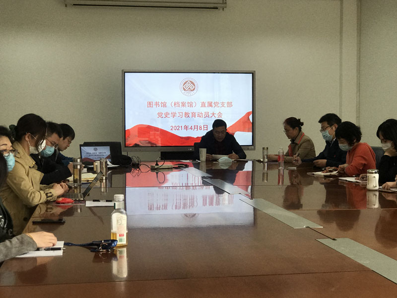 4月8日下午,圖書館(檔案館)直屬黨支部黨史學(xué)習(xí)教育動(dòng)員大會(huì)在良鄉(xiāng)校區(qū)舉行,圖書館(檔案館)直屬黨支部書記韓軍作學(xué)習(xí)黨史教育動(dòng)員講話。館領(lǐng)導(dǎo)王曉華、張凱偉、張斌、劉亮及全體黨員參加大會(huì)。副書記李艷芬主持會(huì)議。
