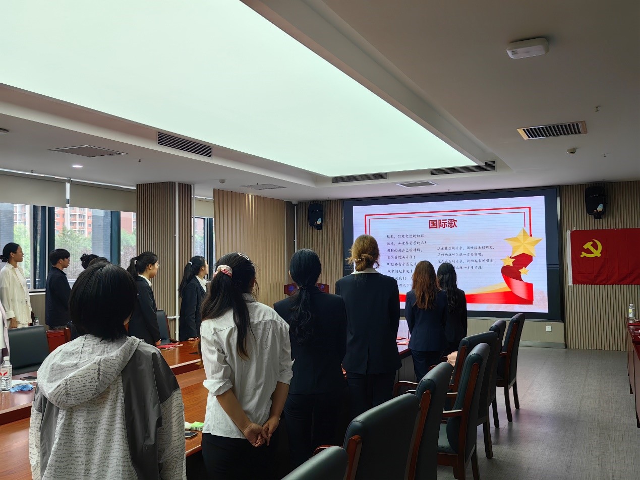 新老黨員共同合唱國際歌,集體宣誓儀式在雄壯的國際歌聲中結(jié)束。