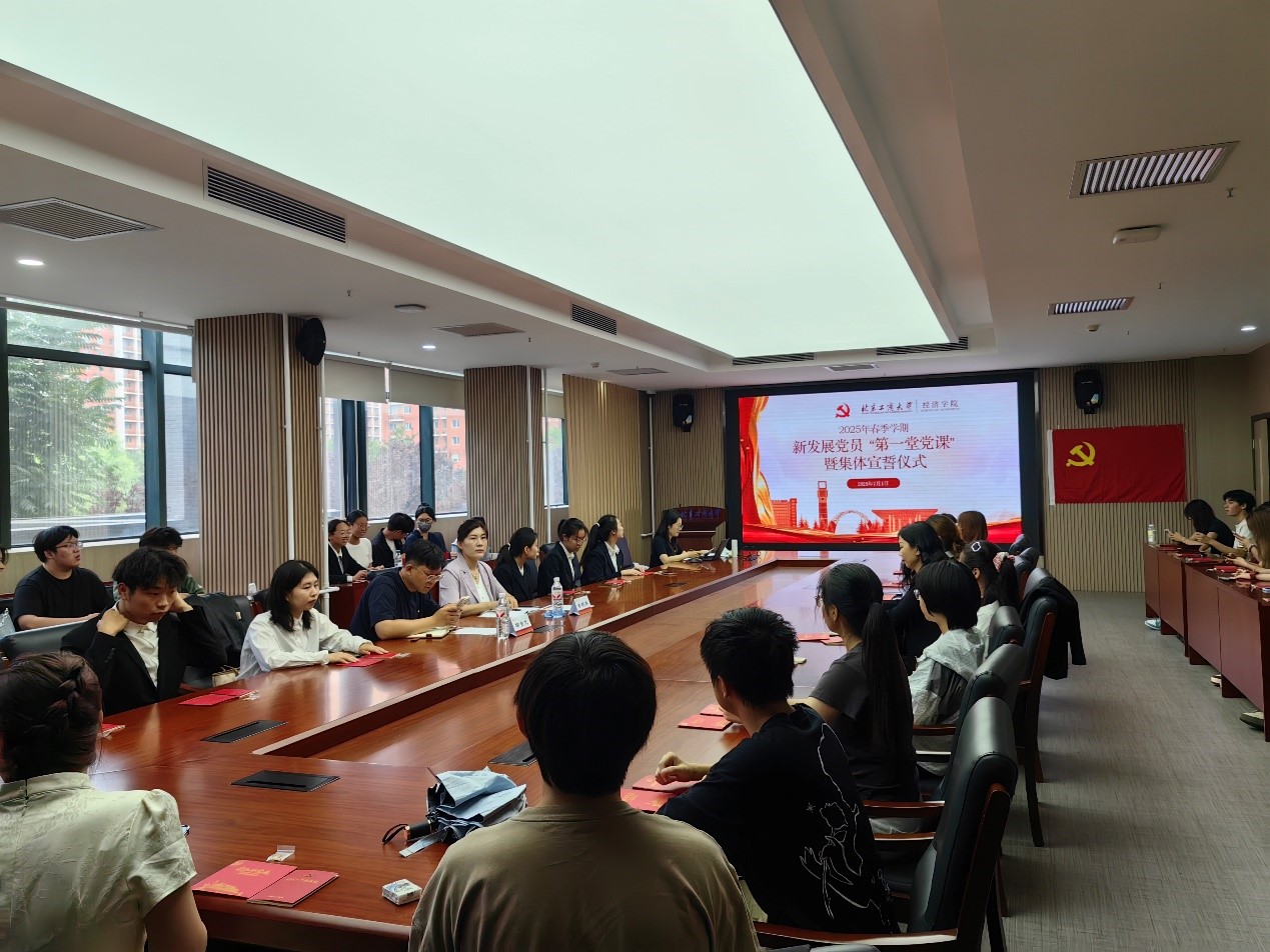 為慶祝中國共產(chǎn)黨成立104周年,深入貫徹中央八項規(guī)定精神,進(jìn)一步提高政治站位,深刻認(rèn)識持續(xù)深化作風(fēng)建設(shè)的重要意義,通過莊嚴(yán)的儀式教育筑牢學(xué)生黨員思想根基,不斷增強政治判斷力、政治領(lǐng)悟力、政治執(zhí)行力,7月1日,經(jīng)濟學(xué)院舉行2025年春季學(xué)期新發(fā)展黨員“第一堂黨課”暨集體宣誓儀式。經(jīng)濟學(xué)院黨委副書記李艷春、專職組織員柳金龍、本科生黨建專項輔導(dǎo)員李文靜及春季學(xué)期新發(fā)展本研學(xué)生黨員46名參會。會議由本科生黨建專項輔導(dǎo)員李文靜主持。