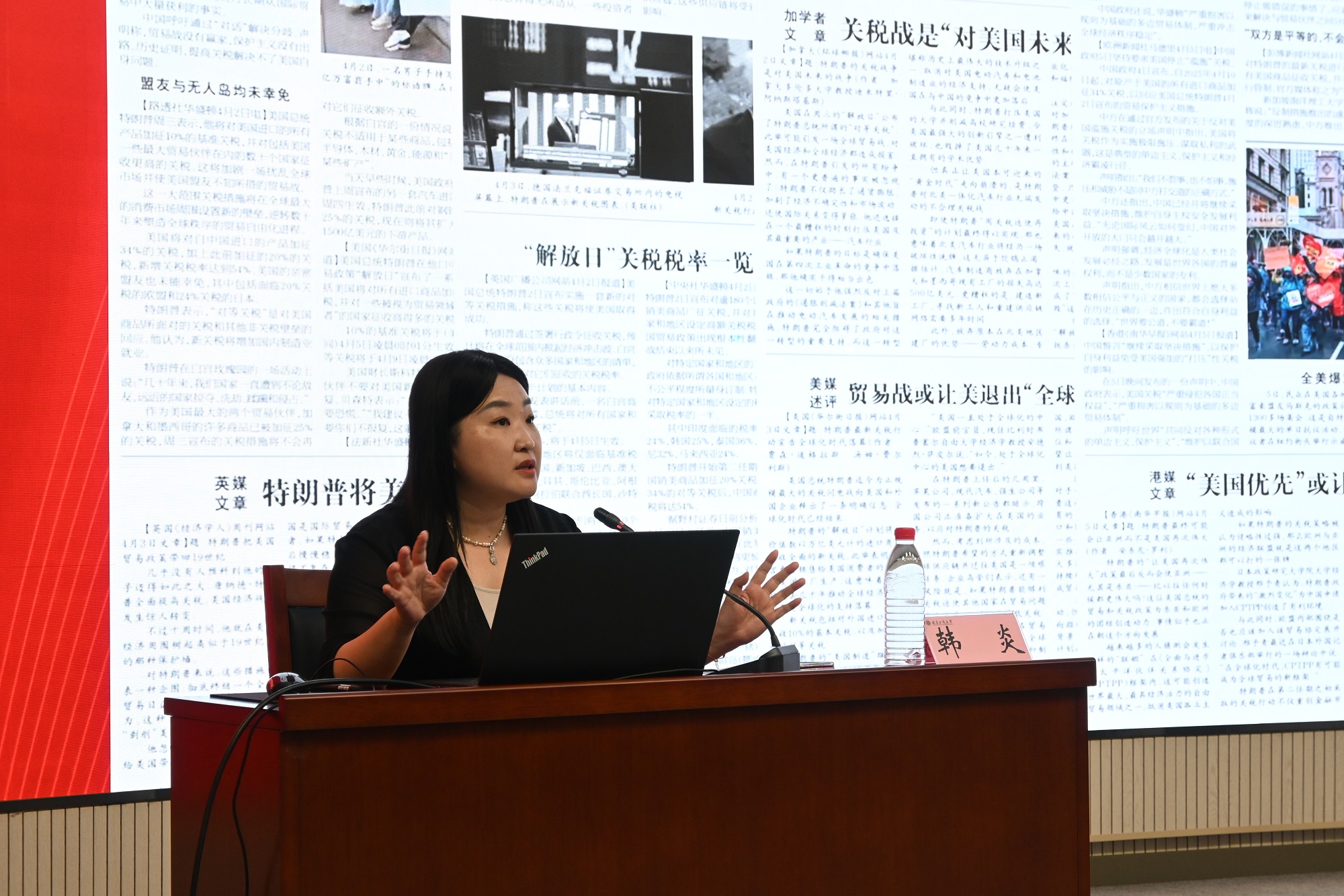 《參考消息》報社時政編輯室主任韓炎以“從《參考消息》讀懂中國自信之源”為主題,為現(xiàn)場師生帶來專題講座。她立足《參考消息》報道實例,講述了在復(fù)雜多變的國際形勢下,中國正以堅定步伐邁向世界舞臺中央,中國獨有的發(fā)展模式正在贏得越來越多國際認可,而以美國為代表的西方國家層出不窮的怪事亂象,也在為世界敲響警鐘,引發(fā)人們對國際秩序與未來發(fā)展的深入思考。她鼓勵廣大學(xué)子要深刻理解中國自信之源,正確認識中國與世界關(guān)系,增強做中國人的志氣、骨氣、底氣,在實現(xiàn)中國式現(xiàn)代化的偉大征程中挺膺擔(dān)當(dāng)。