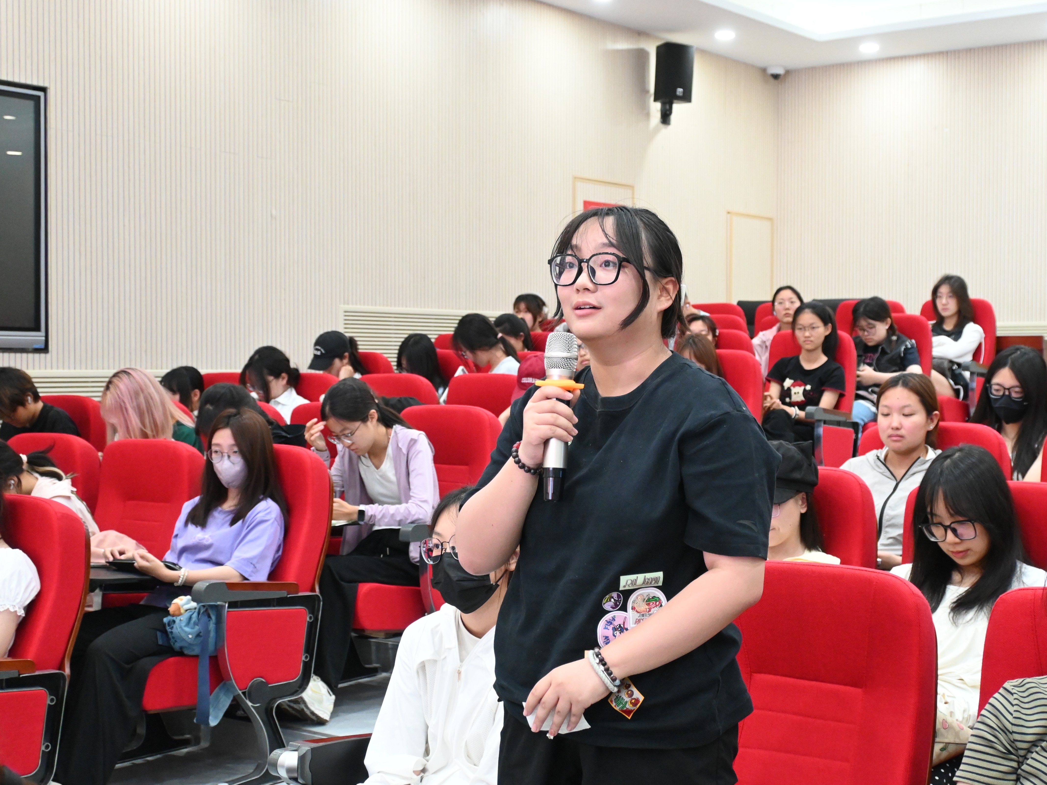 在交流互動環(huán)節(jié),同學(xué)們踴躍提問。韓炎就同學(xué)們提出的中國制度優(yōu)勢、中美貿(mào)易戰(zhàn)等問題進行了耐心解答。