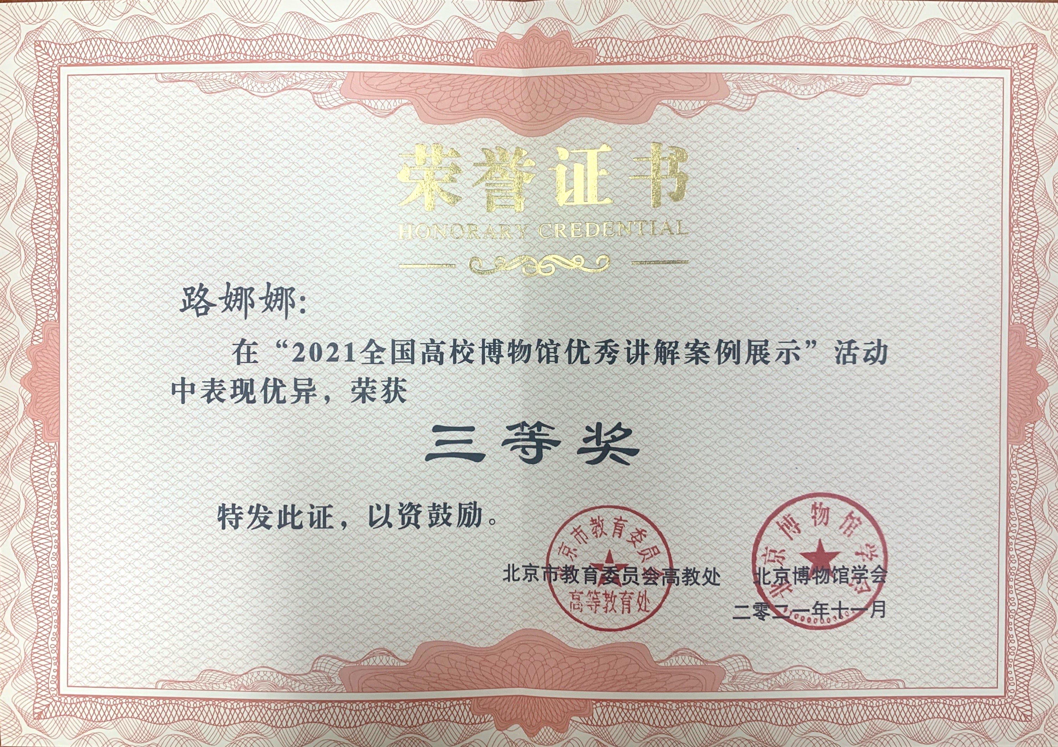12月17日,在北京廣播大廈舉辦的“中國高校博物館論壇暨全國高校博物館優(yōu)秀講解案例展示” 活動現(xiàn)場,2021年度“全國高校博物館優(yōu)秀講解案例展示”活動比賽成績揭曉,我校校史館講解團成員路娜娜在活動中表現(xiàn)優(yōu)異,通過生動講述我校的紅色基因和歷史淵源,榮獲三等獎。