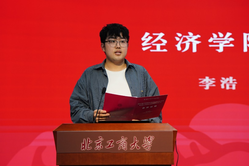 24級研究生李浩作為在校學生代表,感謝學校、學院和金融學科為他們提供了追求理想、探索真知的廣闊天地,感恩楊德勇教授在日常指導中的言傳身教、潤物無聲,感言明德教育基金的成立將是對新一代金融學子的適時激勵。他鄭重承諾,同學們定會秉持“明德”精神,砥礪前行,為金融強國夢貢獻北工商力量。