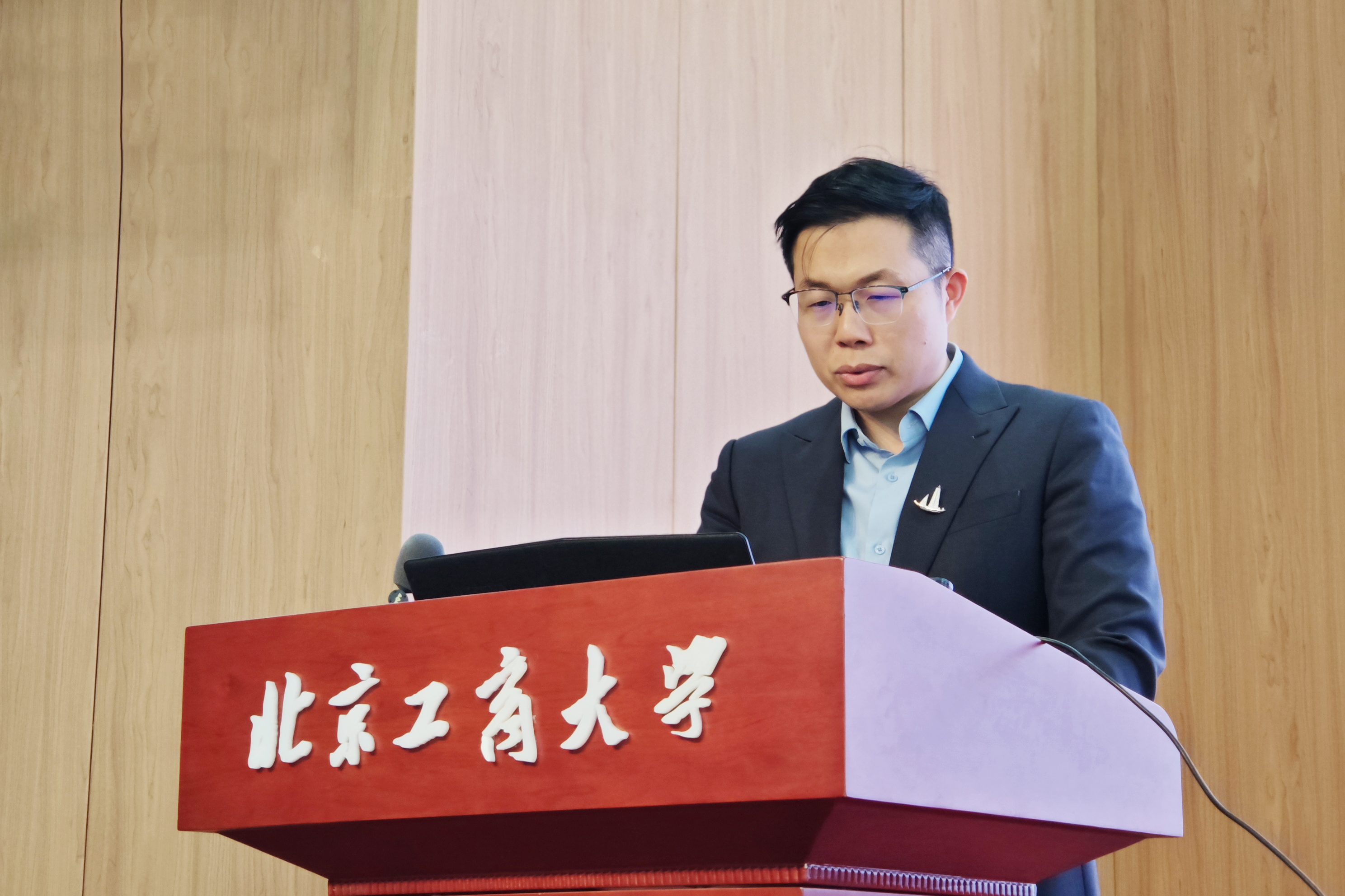 郭毅教授主持校外導師聘任儀式并講話。他向長期支持經濟學科建設、扎根育人育才一線的校內外表示衷心的感謝,并期待學生在學校配備的校內外資源的支持下,從產業、行業、實際崗位獲得新要求,使校園培養更加契合社會要求,成為合格有為的金融人才,為北京乃至全國經濟社會的高質量發展做出北工商貢獻。