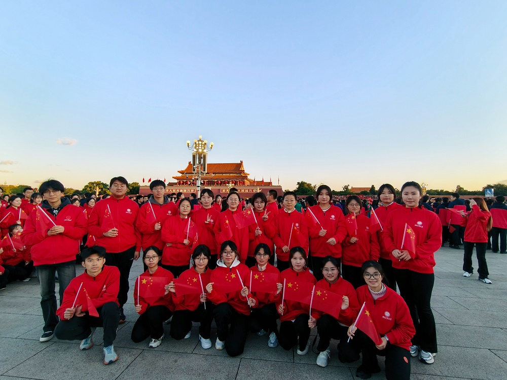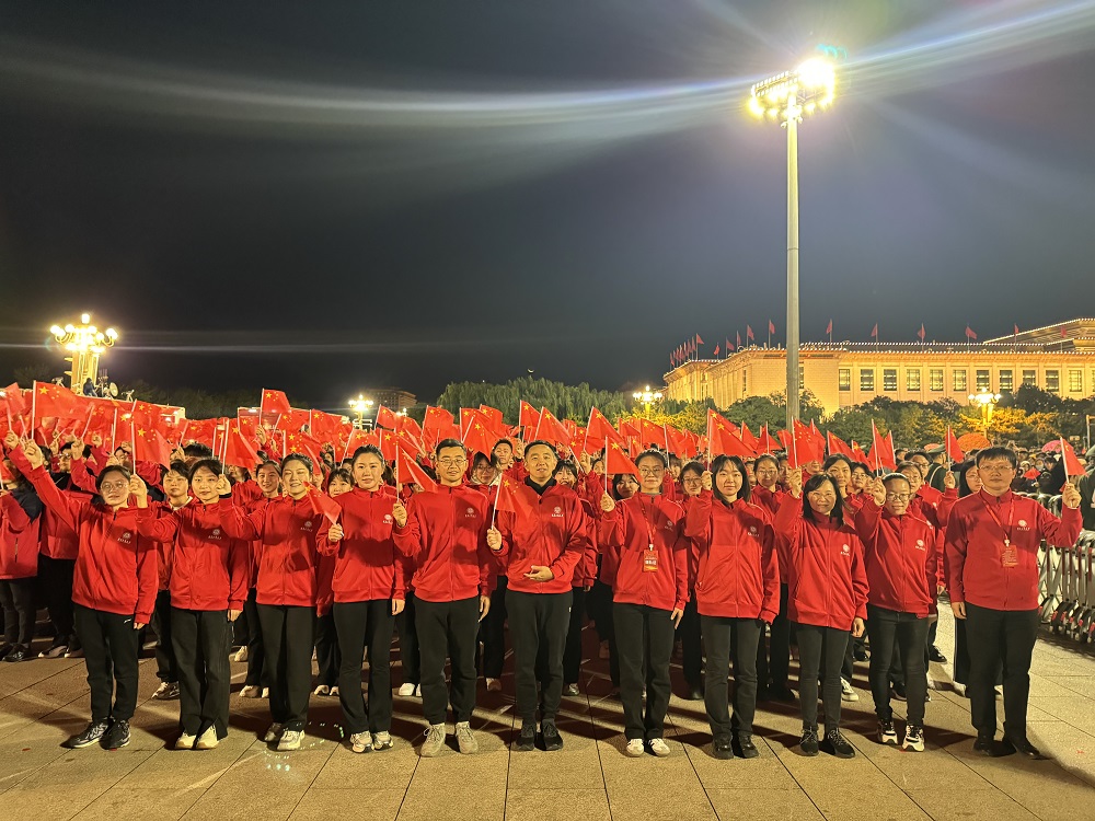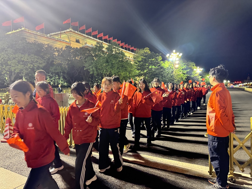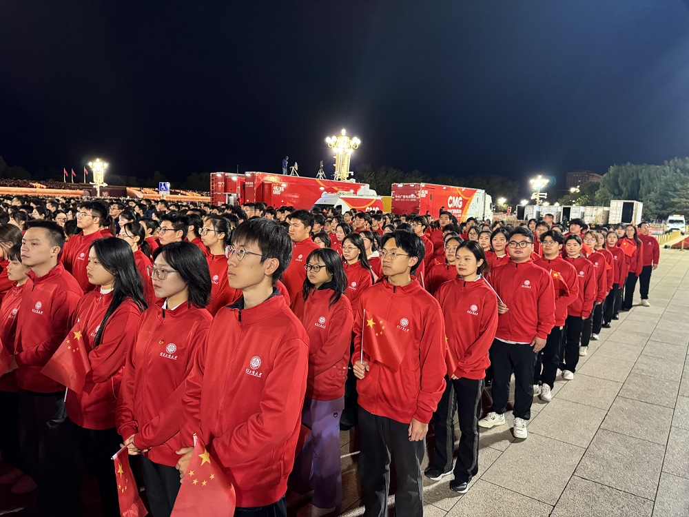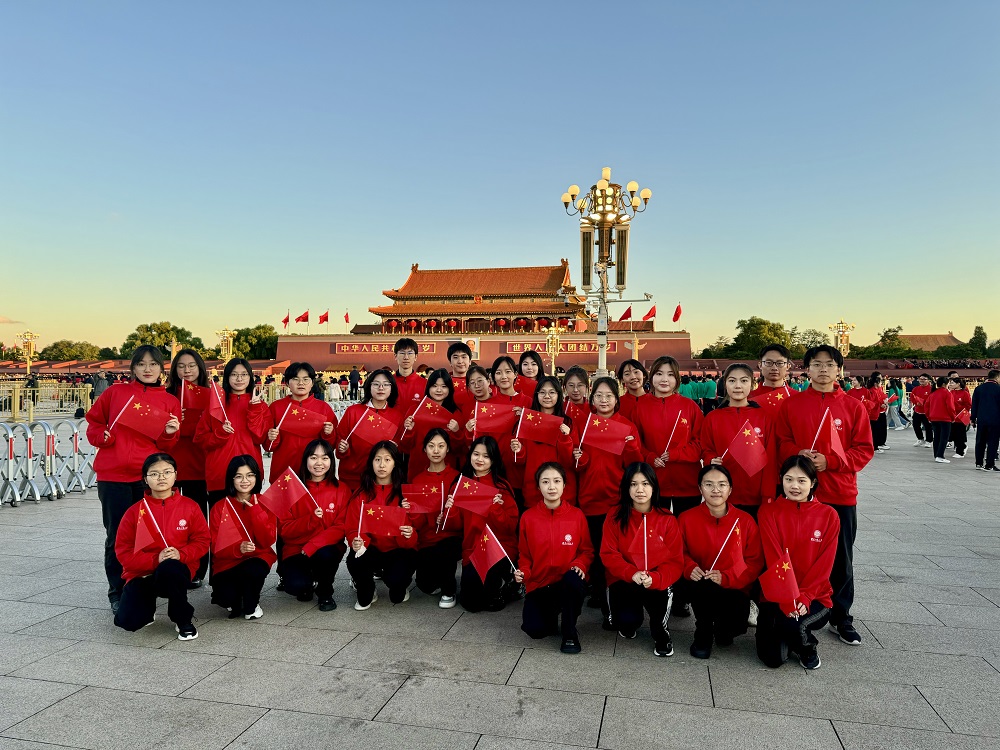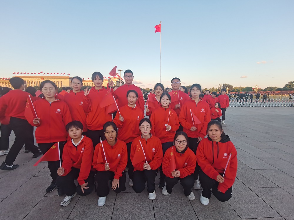 今年是中華人民共和國成立75周年,10月1日凌晨,我校188名師生代表來到天安門廣場,觀禮升國旗儀式,21名師生組成志愿者團隊,承擔活動現(xiàn)場的志愿服務和引導工作,開展沉浸式愛國主義教育活動,共同祝愿祖國繁榮昌盛、國泰民安。