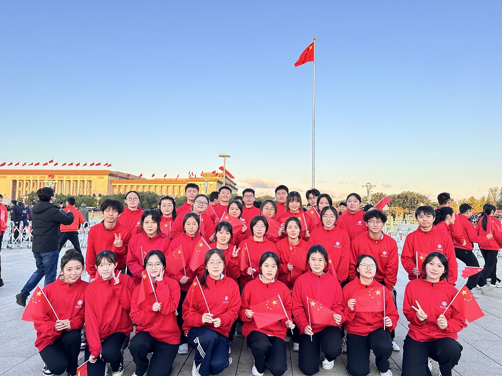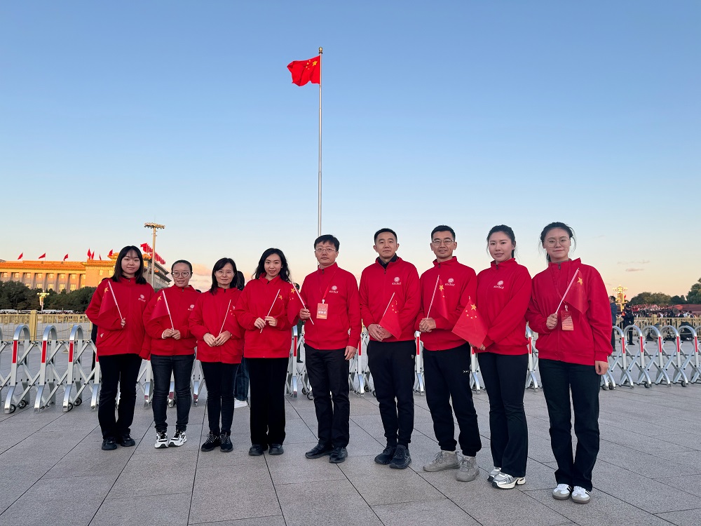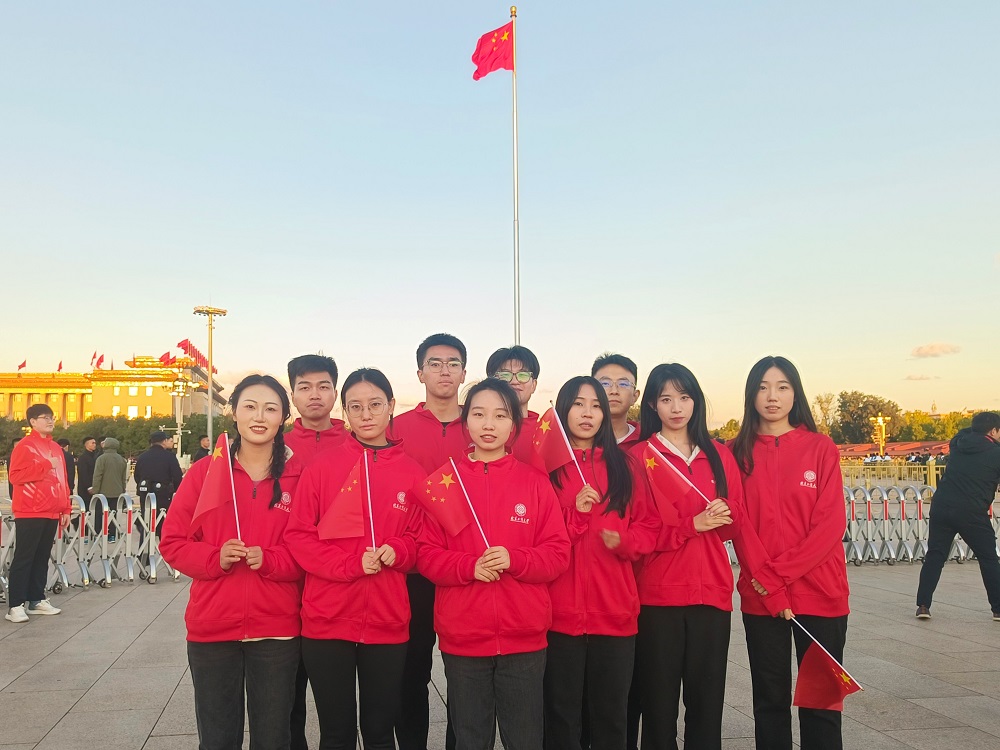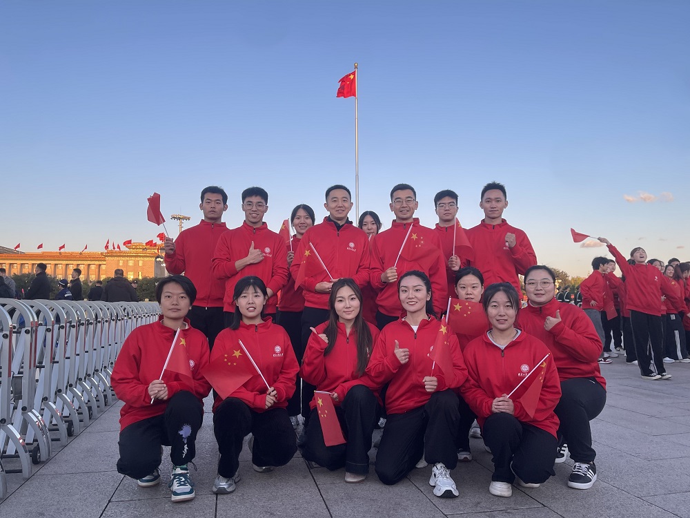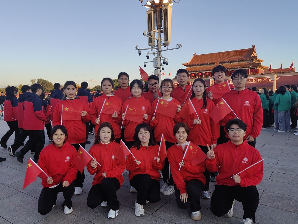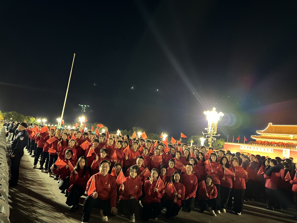 今年是中華人民共和國成立75周年,10月1日凌晨,我校188名師生代表來到天安門廣場,觀禮升國旗儀式,21名師生組成志愿者團隊,承擔活動現(xiàn)場的志愿服務和引導工作,開展沉浸式愛國主義教育活動,共同祝愿祖國繁榮昌盛、國泰民安。