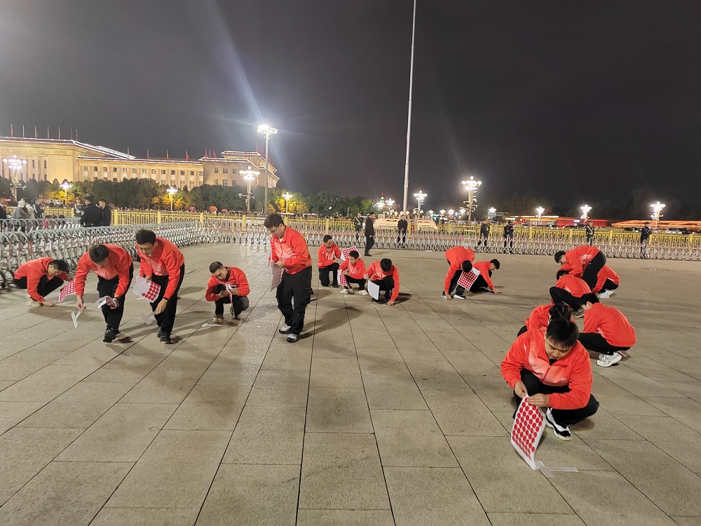為做好升國旗儀式集體觀禮志愿服務工作,我校志愿者們于9月30日晚上便抵達天安門廣場,完成大中小學生站立點位的布置工作,并在停車場至觀禮廣場沿線,進行安檢、現(xiàn)場指引等志愿服務工作。他們熱情且高效的服務,贏得了上級部門及兄弟院校的肯定與贊揚。