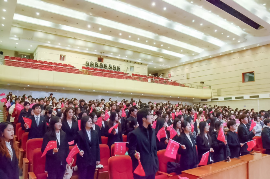 最后,全體領導老師和同學們全體起立,共同合唱北京工商大學校歌,用歌聲表達對學校的熱愛和對未來的期許。