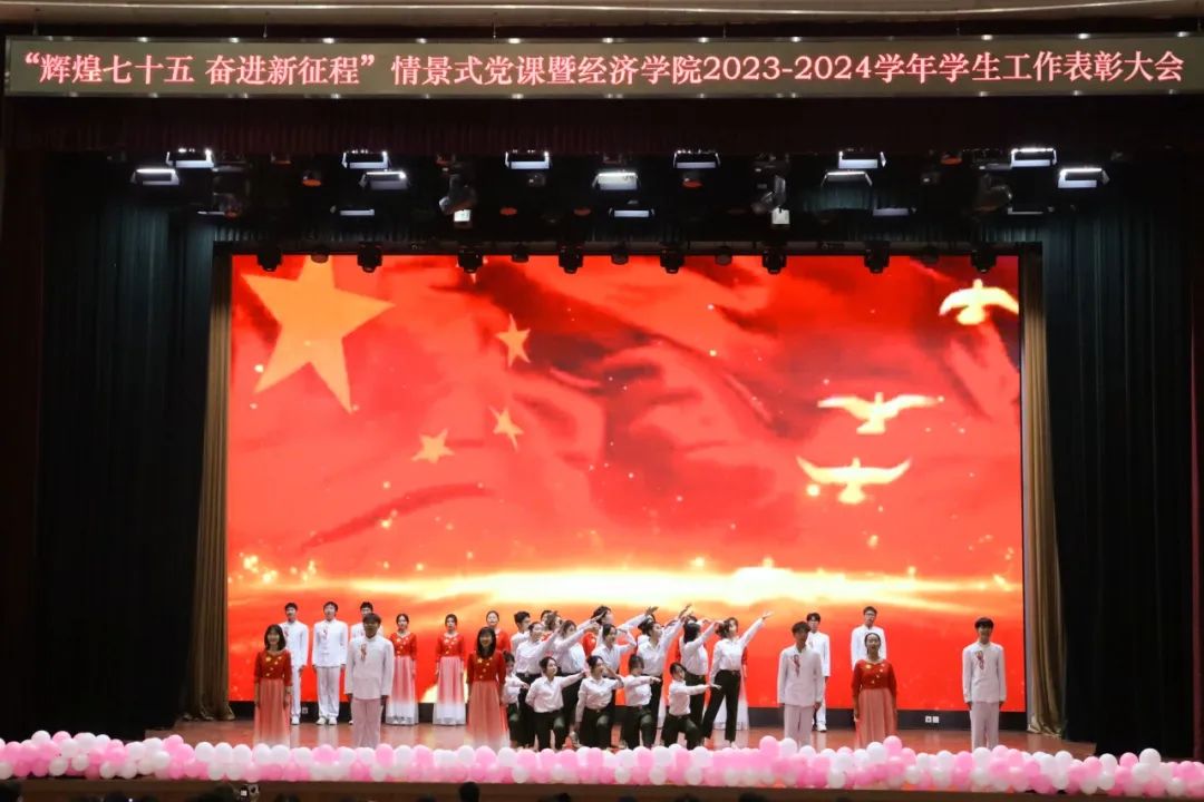 榜樣熠熠,光輝相承。適逢建國75周年華誕及一二九運動89周年之際,12月4日,經濟學院在良鄉主校區舉辦“輝煌七十五 奮進新征程”情景式黨課暨2023-2024學年學生工作表彰大會,旨在回顧那些激蕩人心的歷史瞬間,大力弘揚愛國主義精神,深切激發青年學子的家國情懷與責任擔當,讓紅色基因與榜樣力量薪火相傳。